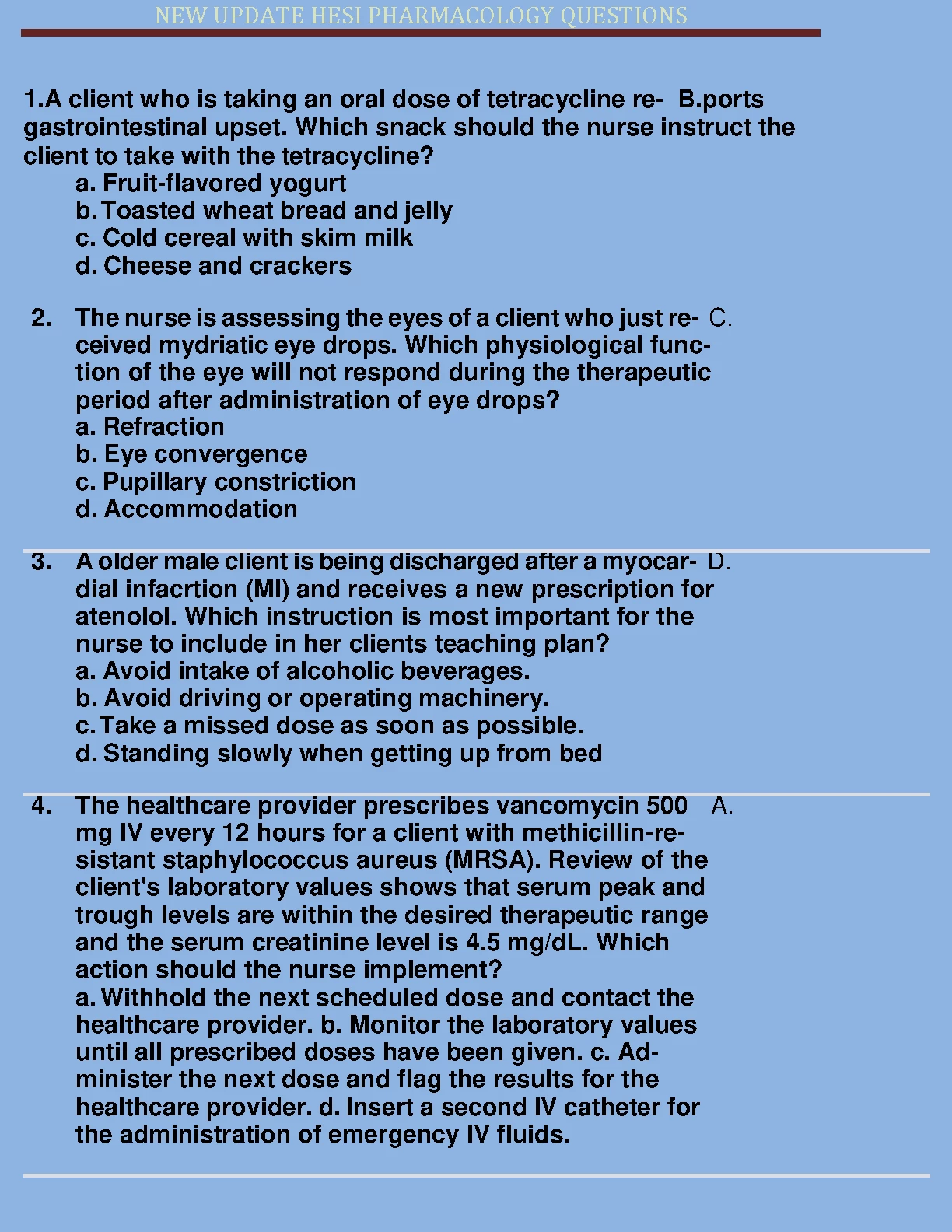 NEW UPDATE HESI PHARMACOLOGY QUESTIONS 2024 SERIES. NEW UPDATE HESI PHARMACOLOGY QUESTIONS 2024 SERIES HESI MED SURG