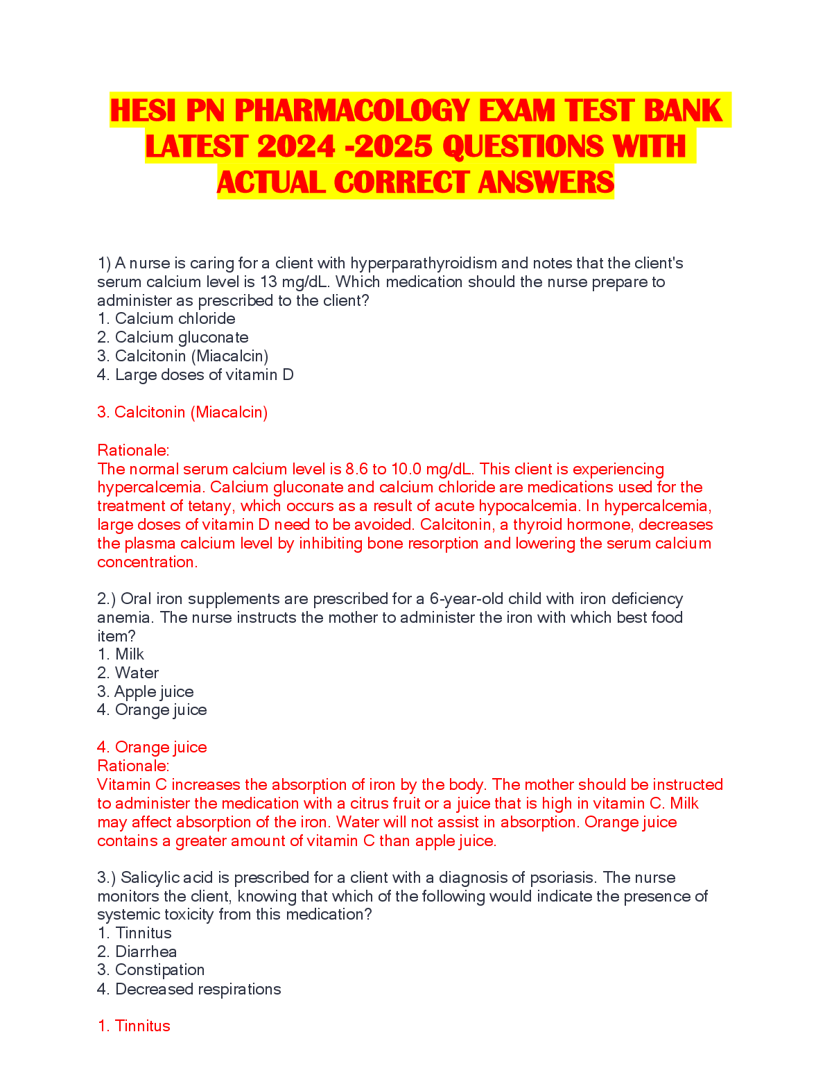 HESI PN PHARMACOLOGY EXAM TEST BANK LATEST 2024 QUESTIONS WITH ACTUAL CORRECT ANSWERS. HESI PN PHARMACOLOGY EXAM TEST BANK LATEST 2024 QUESTIONS WITH ACTUAL CORRECT ANSWERS HESI MED SURG