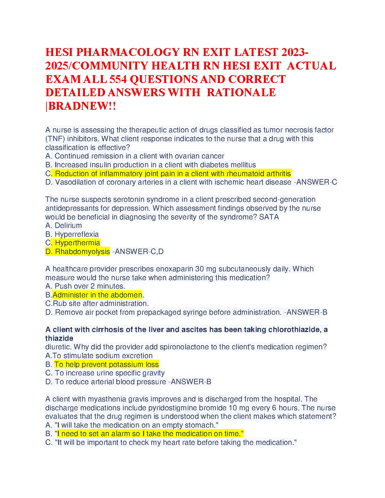 HESI PHARMACOLOGY RN EXIT LATEST 2024 COMMUNITY HEALTH RN HESI EXIT ACTUAL EXAM ALL 554 QUESTIONS AND CORRECT DETAILED ANSWERS WITH RATIONALE BRAND NEW. HESI PHARMACOLOGY RN EXIT LATEST 2024 COMMUNITY HEALTH RN HESI EXIT ACTUAL EXAM ALL 554 QUESTIONS AND CORRECT DETAILED ANSWERS WITH RATIONALE BRAND NEW HESI MED SURG
