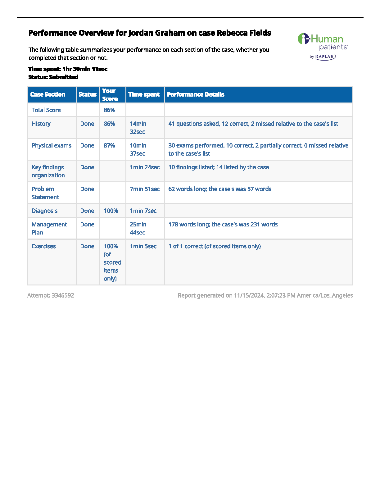 ace your ihuman patients exams on the first try! this detailed performance overview for the rebecca fields case study pr...