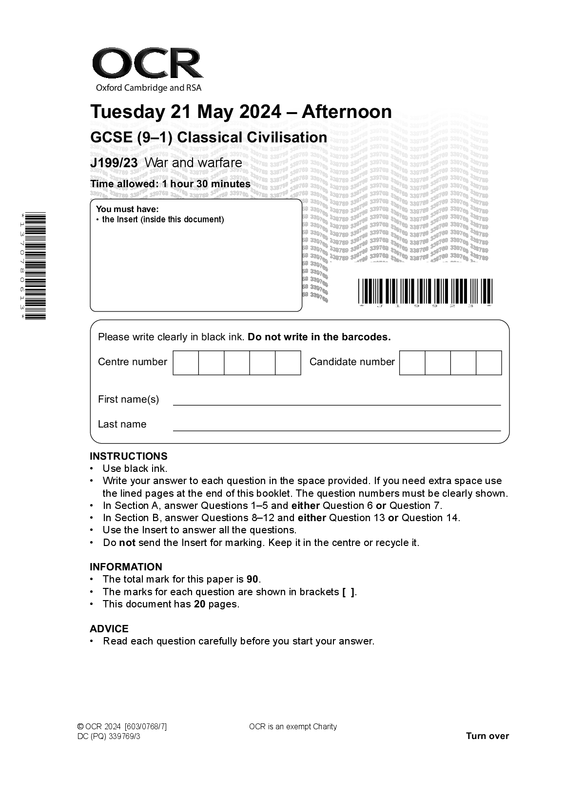 2024 0CR GCSE Classical Civilisation Paper 23 (J199/23: War and warfare). 2024 0CR GCSE Classical Civilisation Paper 23 (J199/23: War and warfare) OCR GCSE Papers & mark schemes