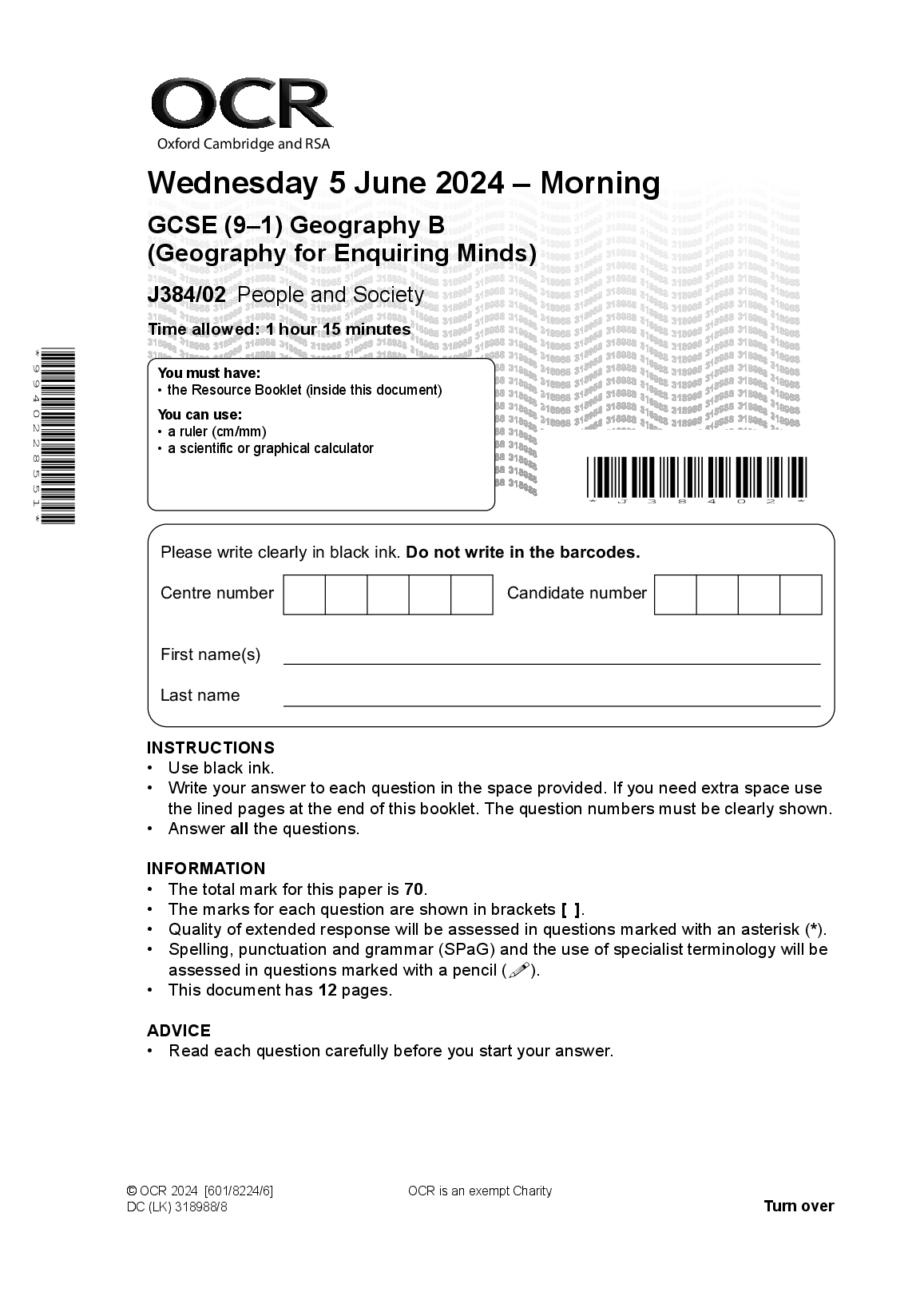 2024 OCR GCSE Geography B Paper 2 (J384/02: People and Society). 2024 OCR GCSE Geography B Paper 2 (J384/02: People and Society) OCR GCSE Papers & mark schemes