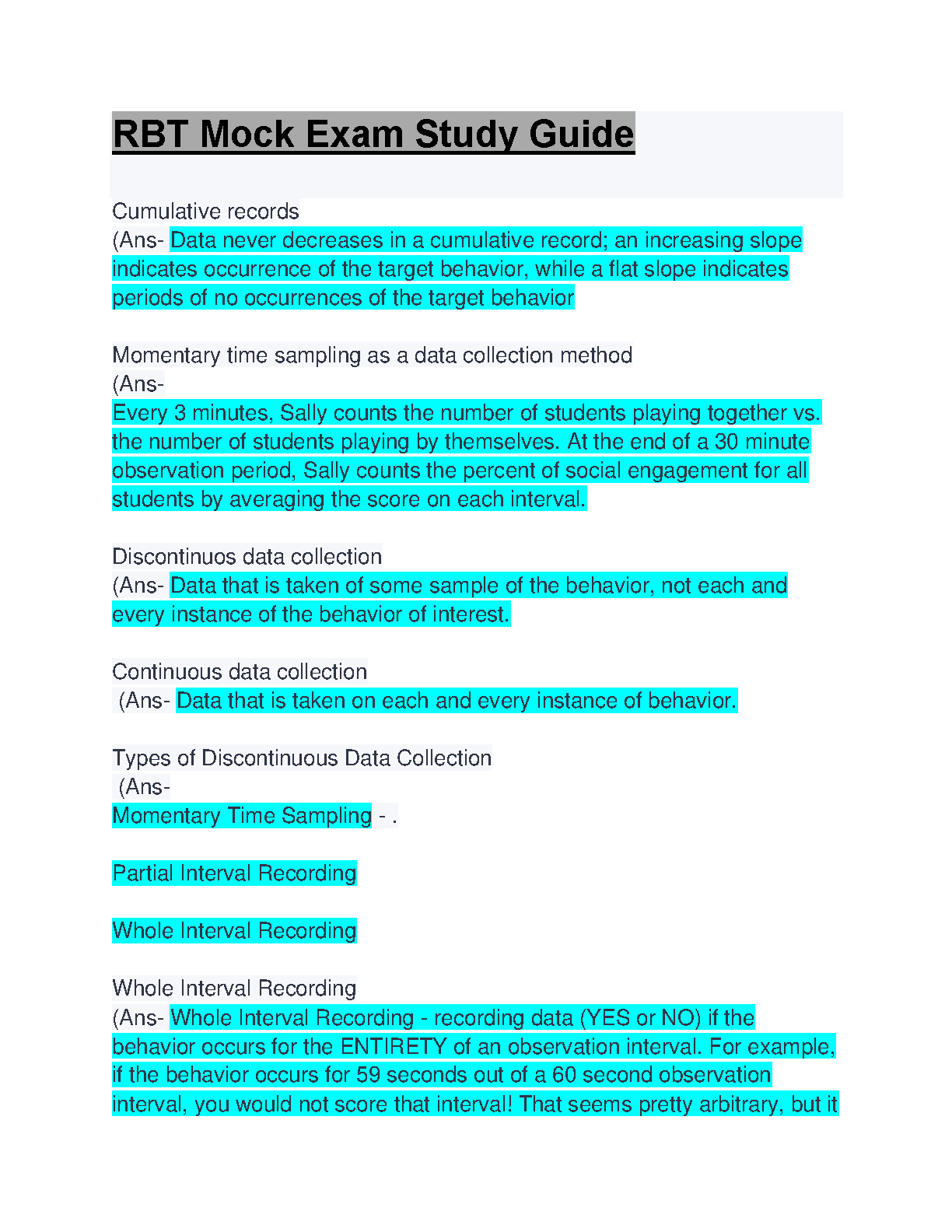 RBT Mock Exam Study Guide 2024 Guaranteed Pass. RBT Mock Exam Study Guide 2024 Guaranteed Pass STUDY GUIDE