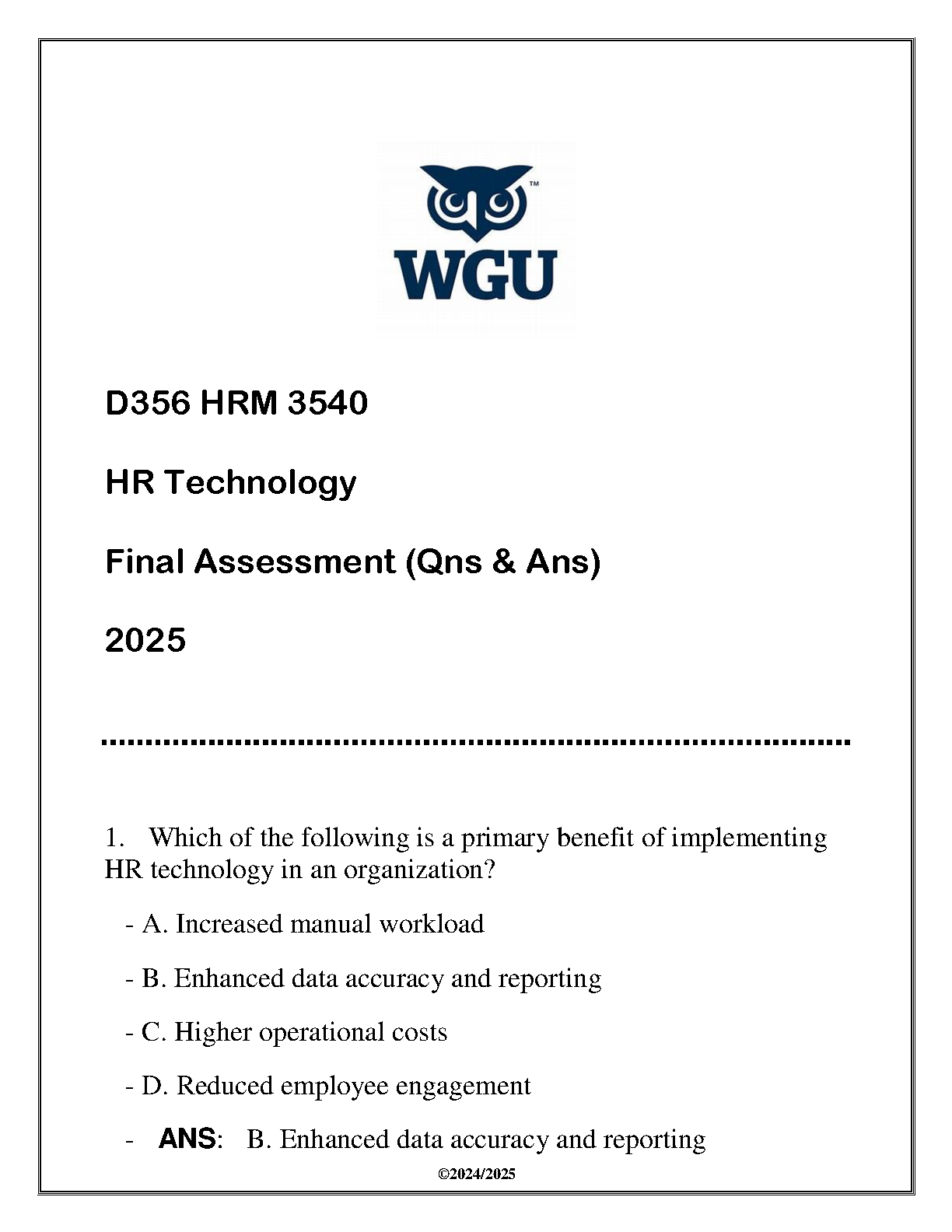 ace your wgu hrm 3540 hr technology final exam with this comprehensive set of questions and answers. this 2025 edition c...