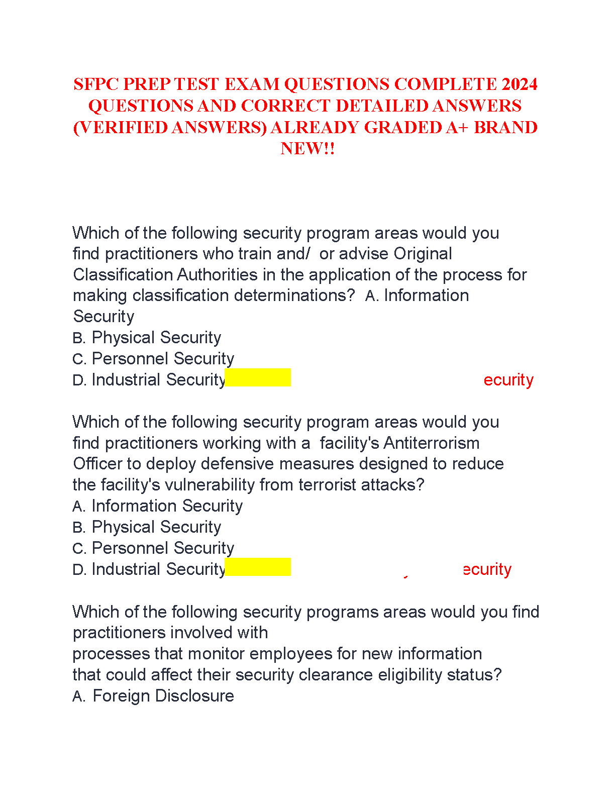 ace your sfpc exam with this comprehensive prep test containing complete 2024 questions and verified answers. this resou...