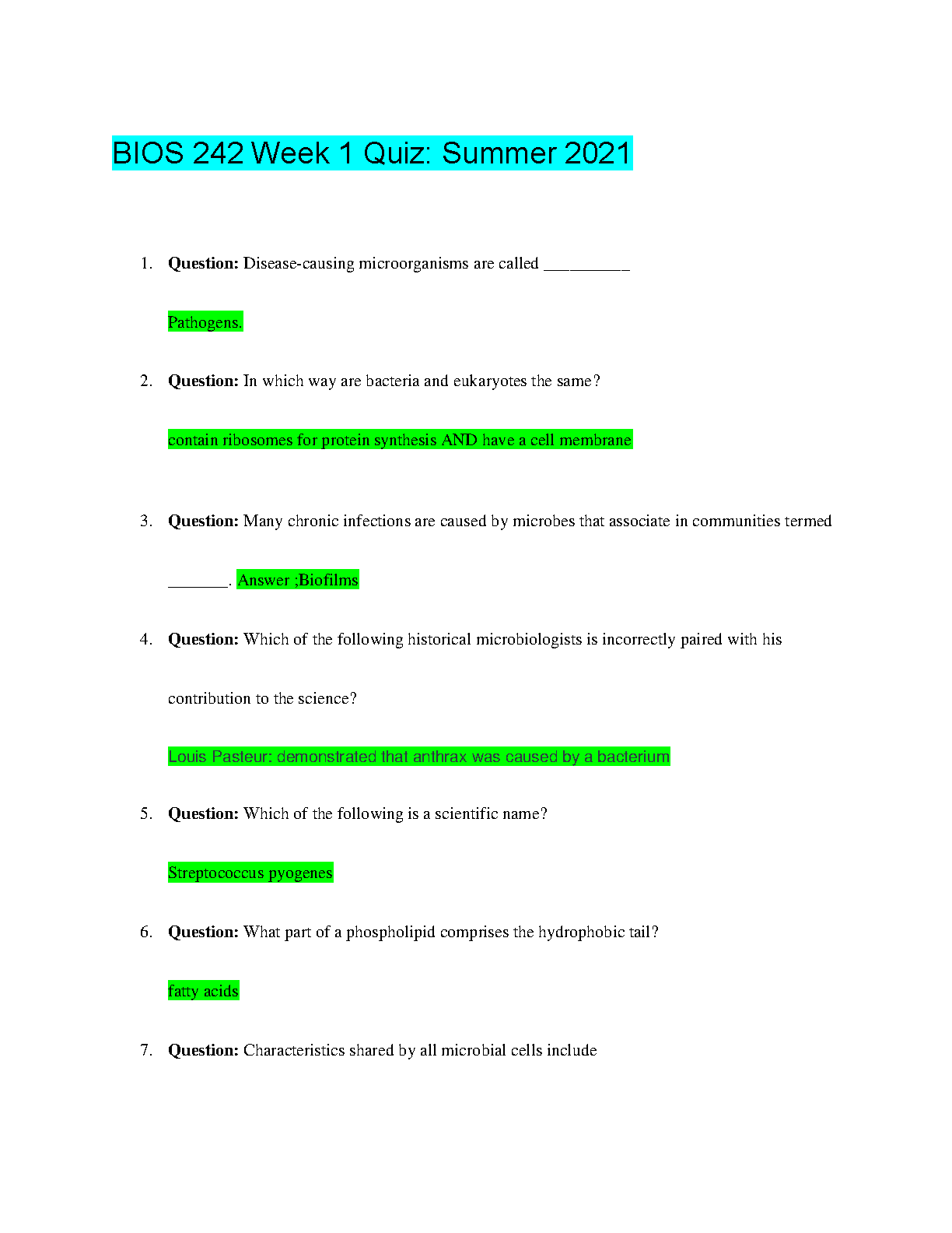 prepare for your bios 242 exam with this comprehensive quiz covering key concepts from week 1, summer 2021. this resourc...
