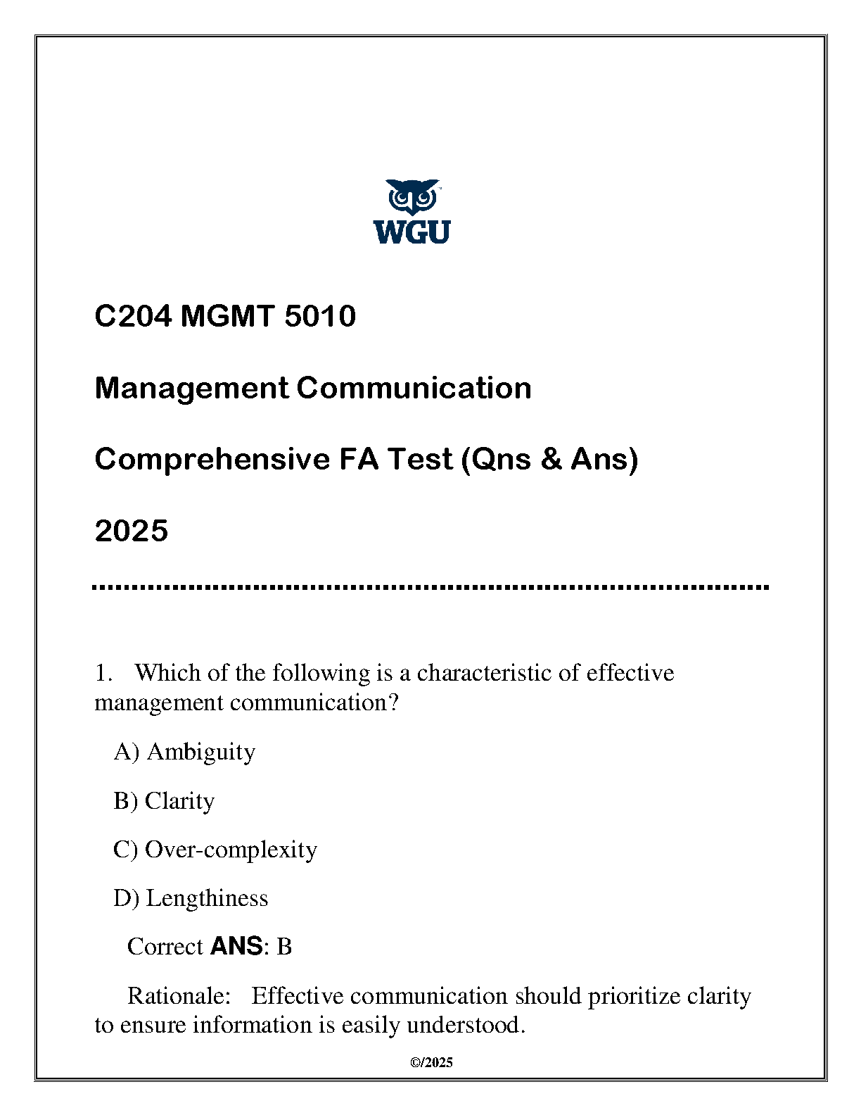ace your wgu c214 financial management exam with this comprehensive test bank. this resource contains questions and answ...