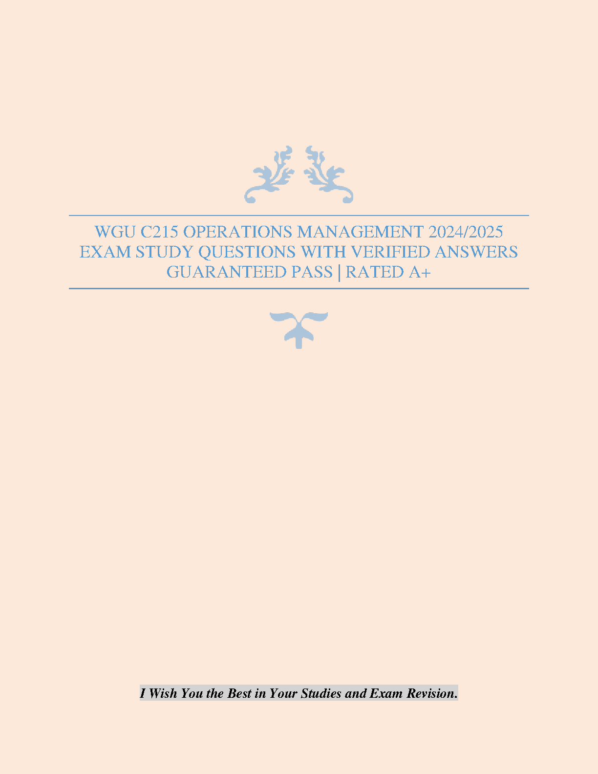 WGU C215 Operations Management 2024/2025 Exam Study Guide: Ace Your Exam on the First Attempt. WGU C215 Operations Management 2024/2025 Exam Study Guide: Ace Your Exam on the First Attempt WGU C215