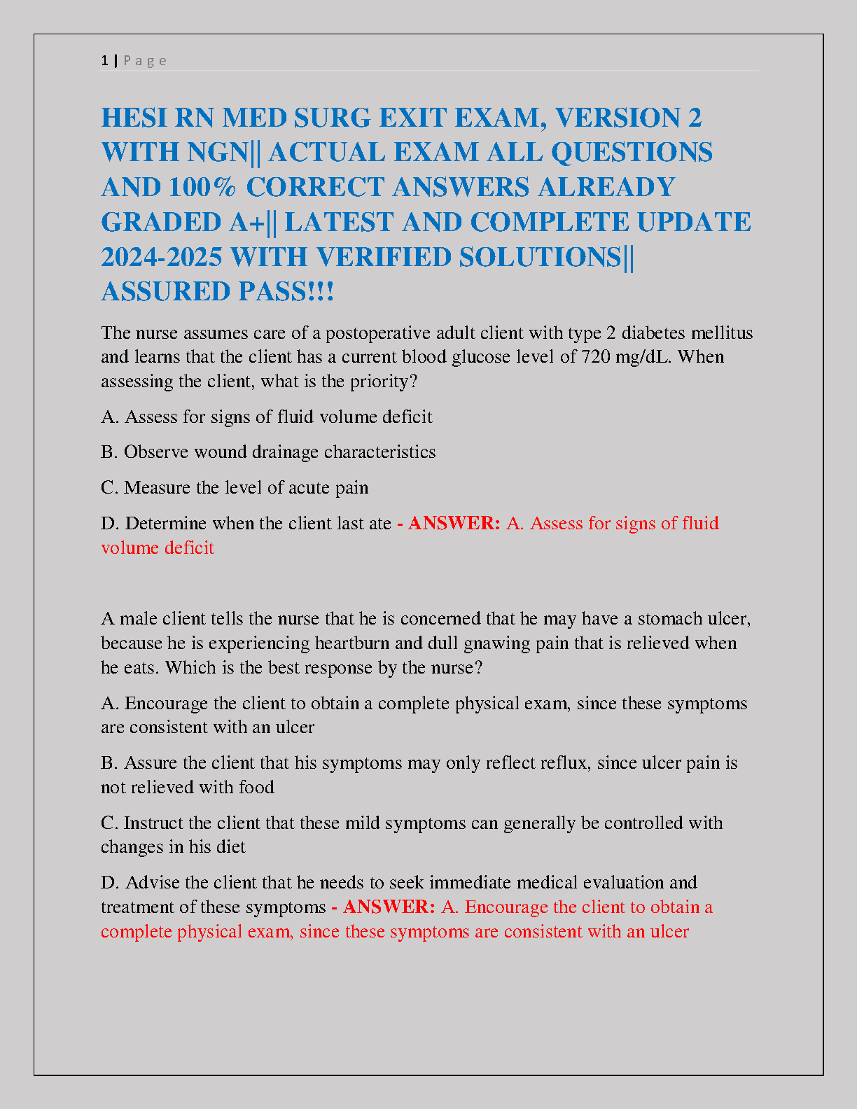 ace your hesi med surg exit exam with this comprehensive q&a resource. this 2022/2023 edition (v1 version 1) guarantees...