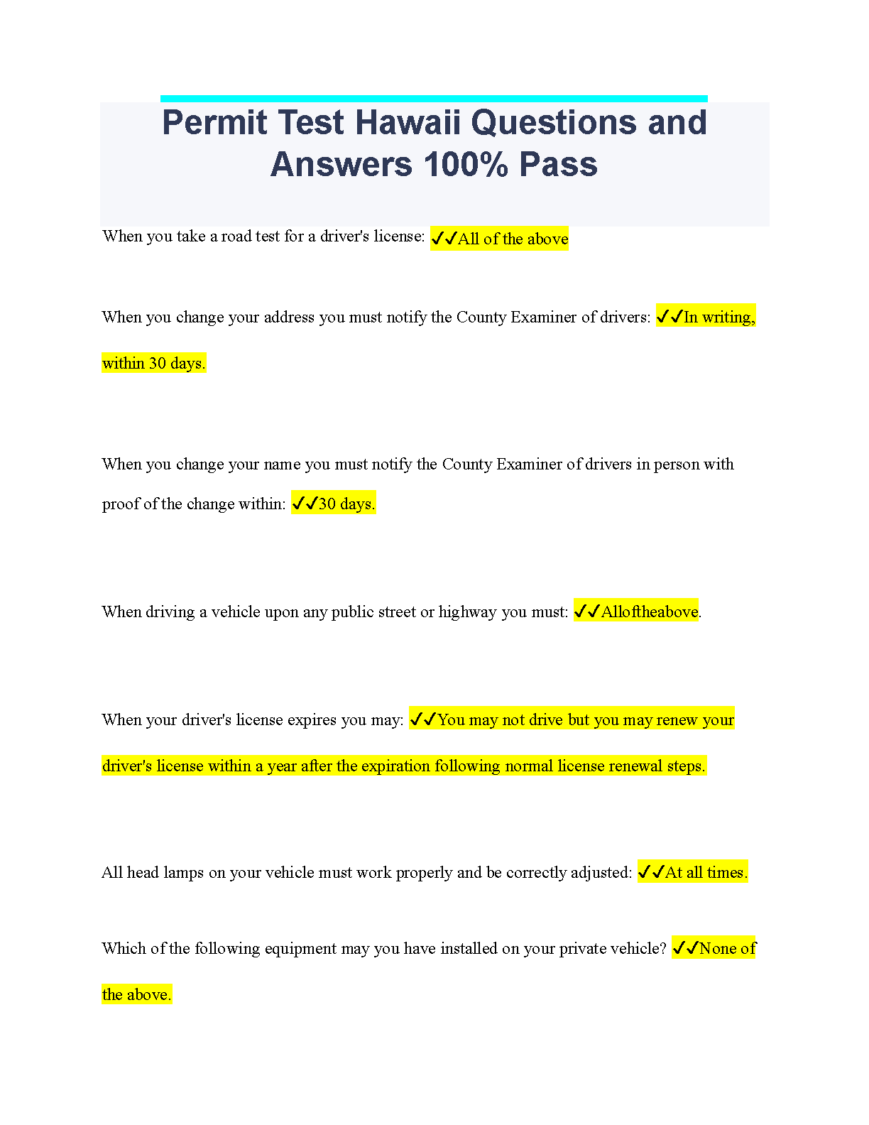 ace your hawaii driver's permit test on the first try with this comprehensive guide. this resource provides a complete s...