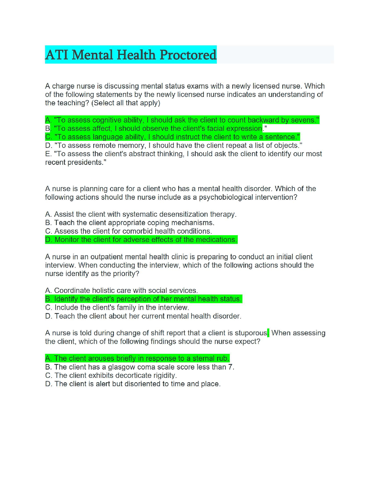 ace your ati mental health proctored exam on the first try with this comprehensive study guide. this resource contains p...