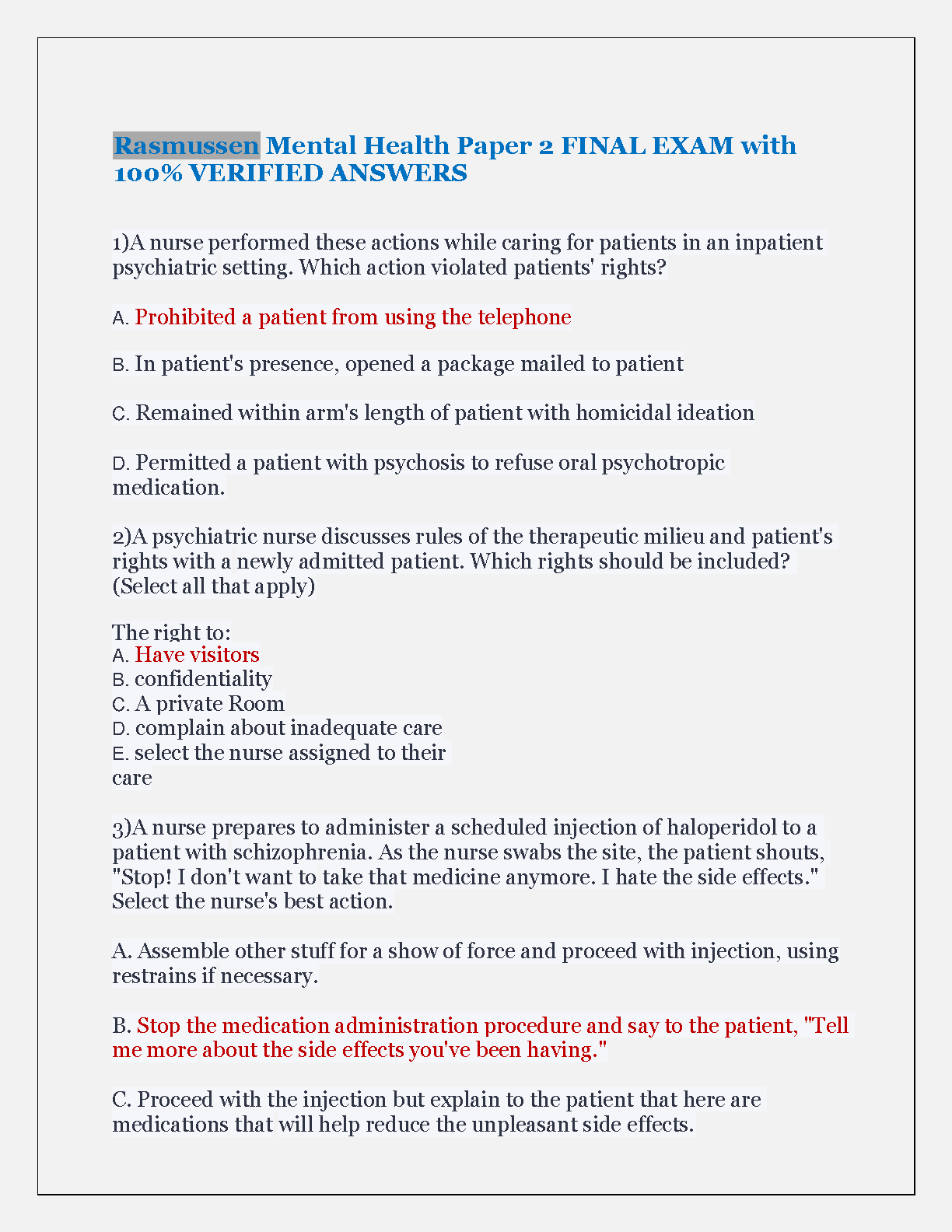 ace your rasmussen mental health paper 2 final exam with this comprehensive study guide containing 100% verified answers...