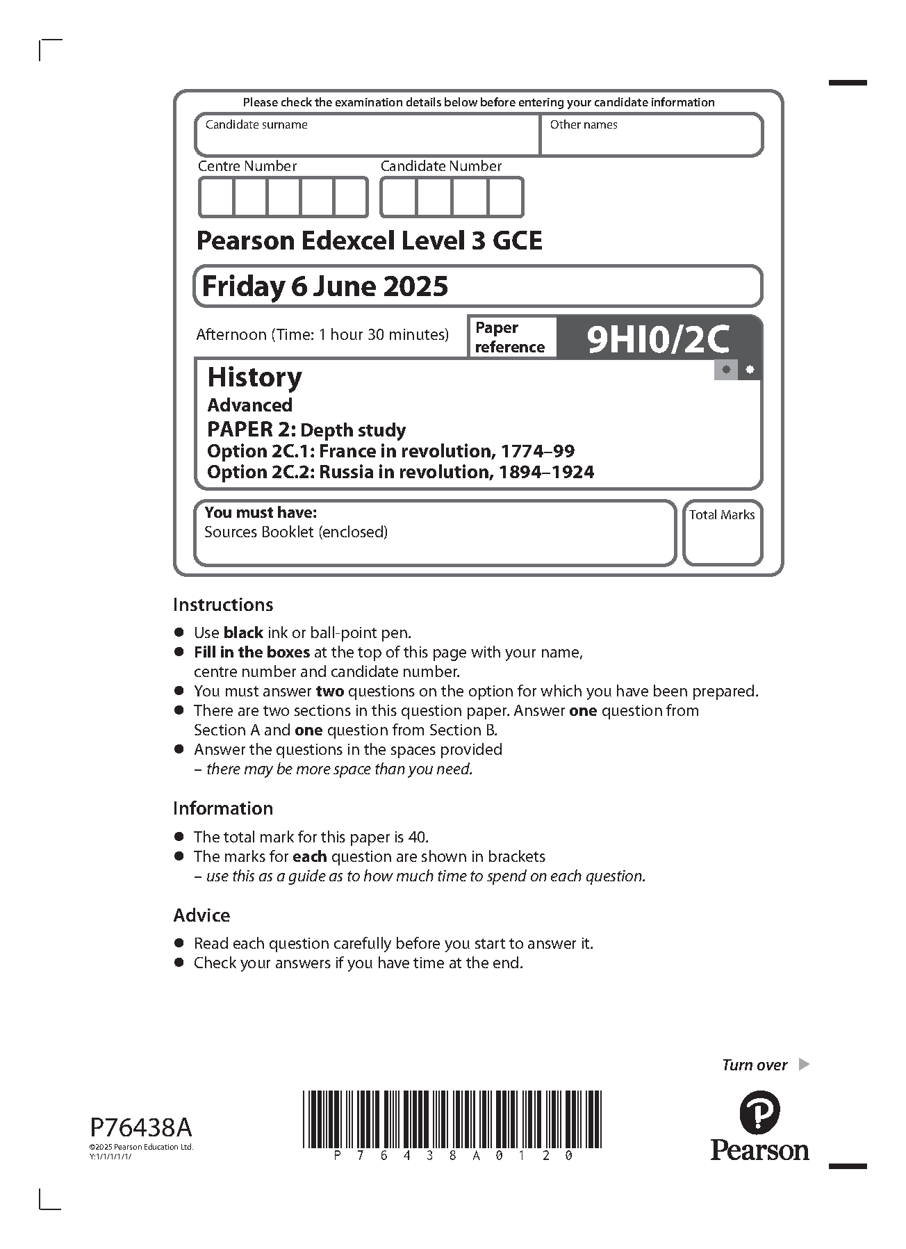2025 Pearson Edexcel A Level History PAPER 2 and Mark Scheme Combined (9HI0/2C: Depth study). 2025 Pearson Edexcel A Level History PAPER 2 and Mark Scheme Combined (9HI0/2C: Depth study) Pearson Edexcel A and AS Papers and Mark Schemes