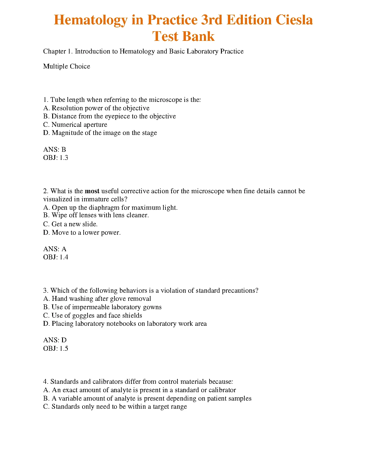 Test Bank For Hematology in Practice 3rd Edition by Betty Ciesla. Test Bank For Hematology in Practice 3rd Edition by Betty Ciesla TEST BANK