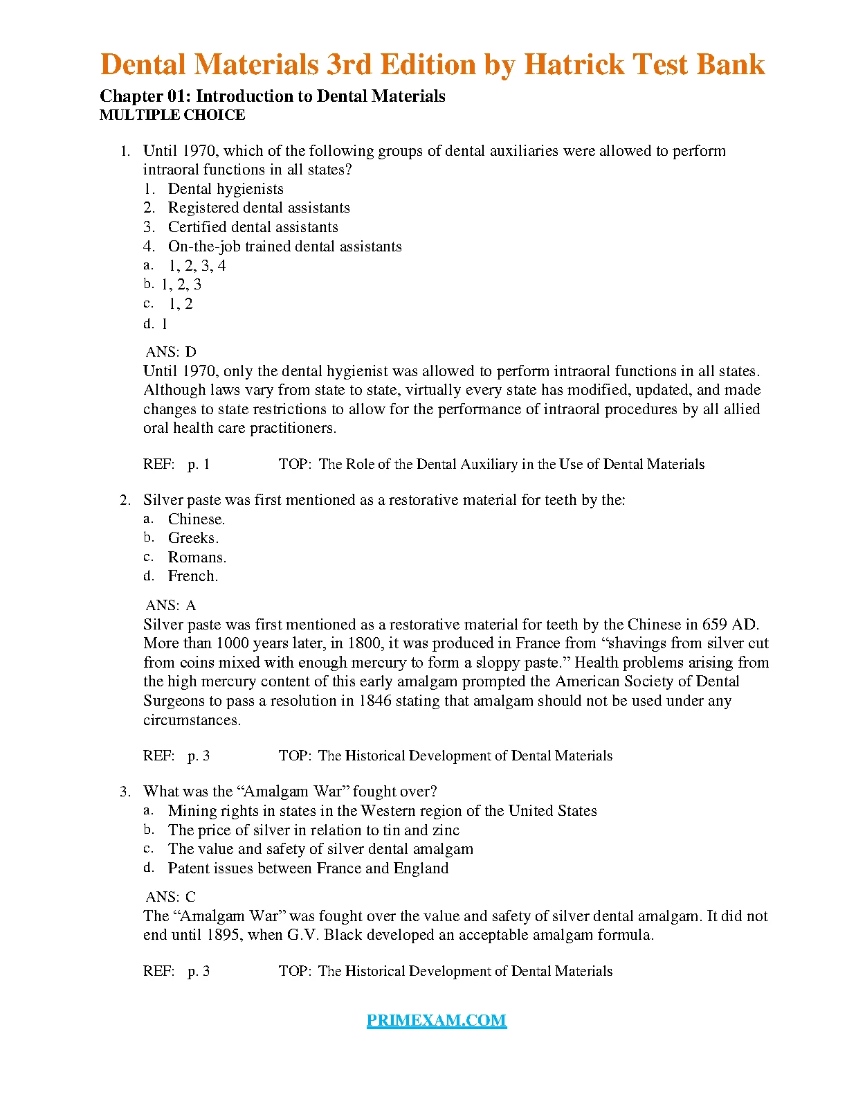 test bank for dental materials 3rd edition by hatrick