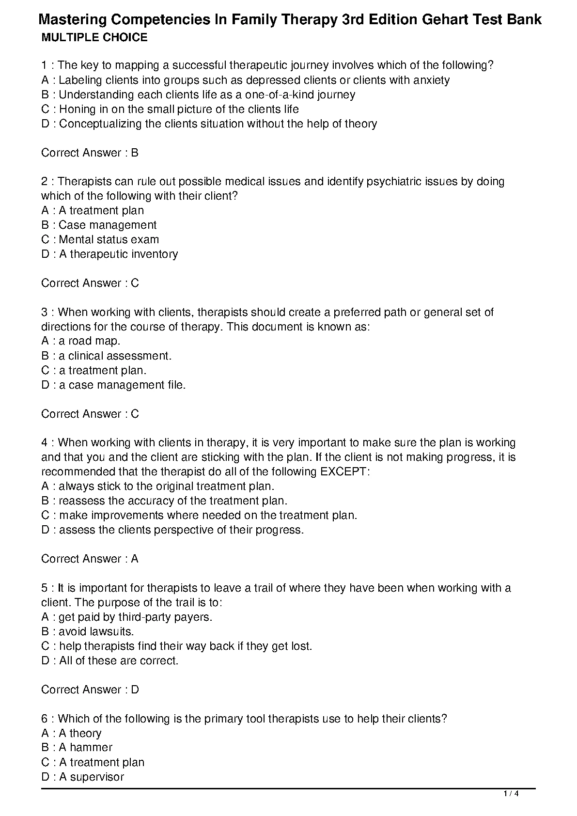 Test Bank For Mastering Competencies In Family Therapy 3rd Edition by Diane R. Gehart.. Test Bank For Mastering Competencies In Family Therapy 3rd Edition by Diane R. Gehart. TEST BANK