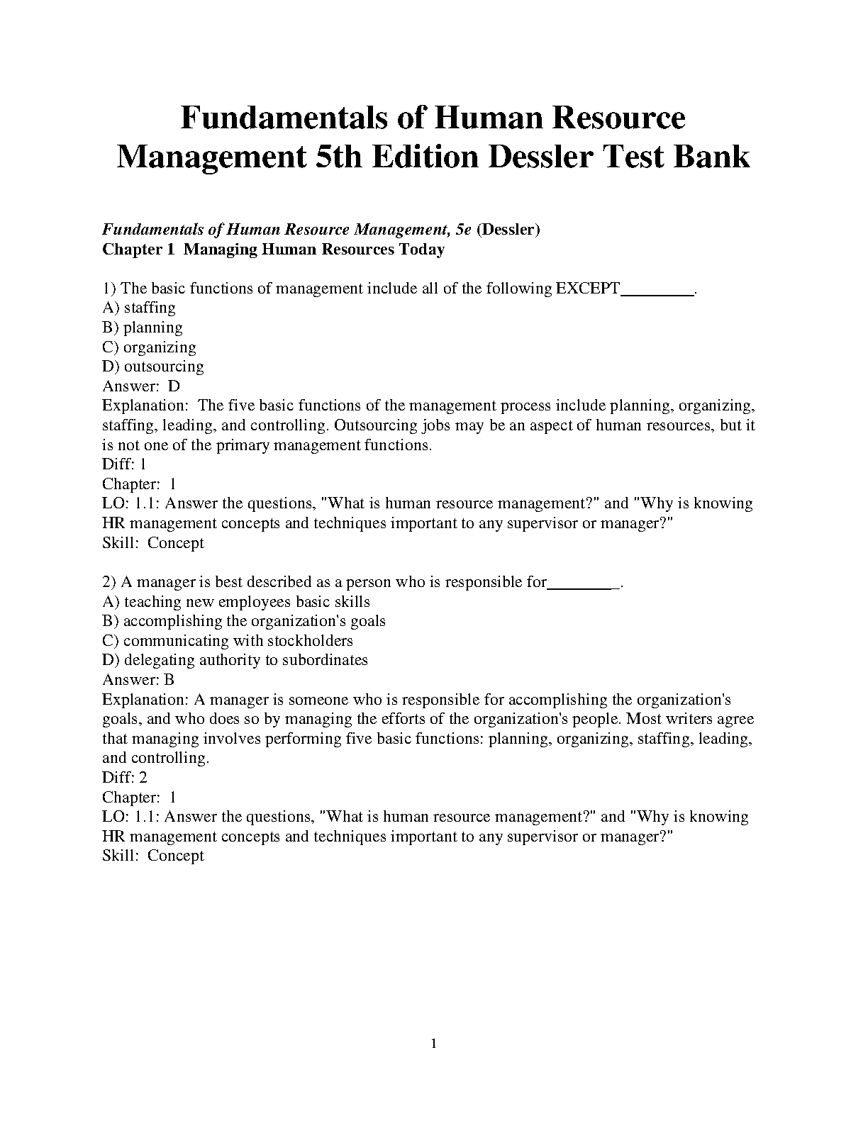 fundamentals of human resource management 5th edition dessler test bank. download on www.leakedexams.com instantly.