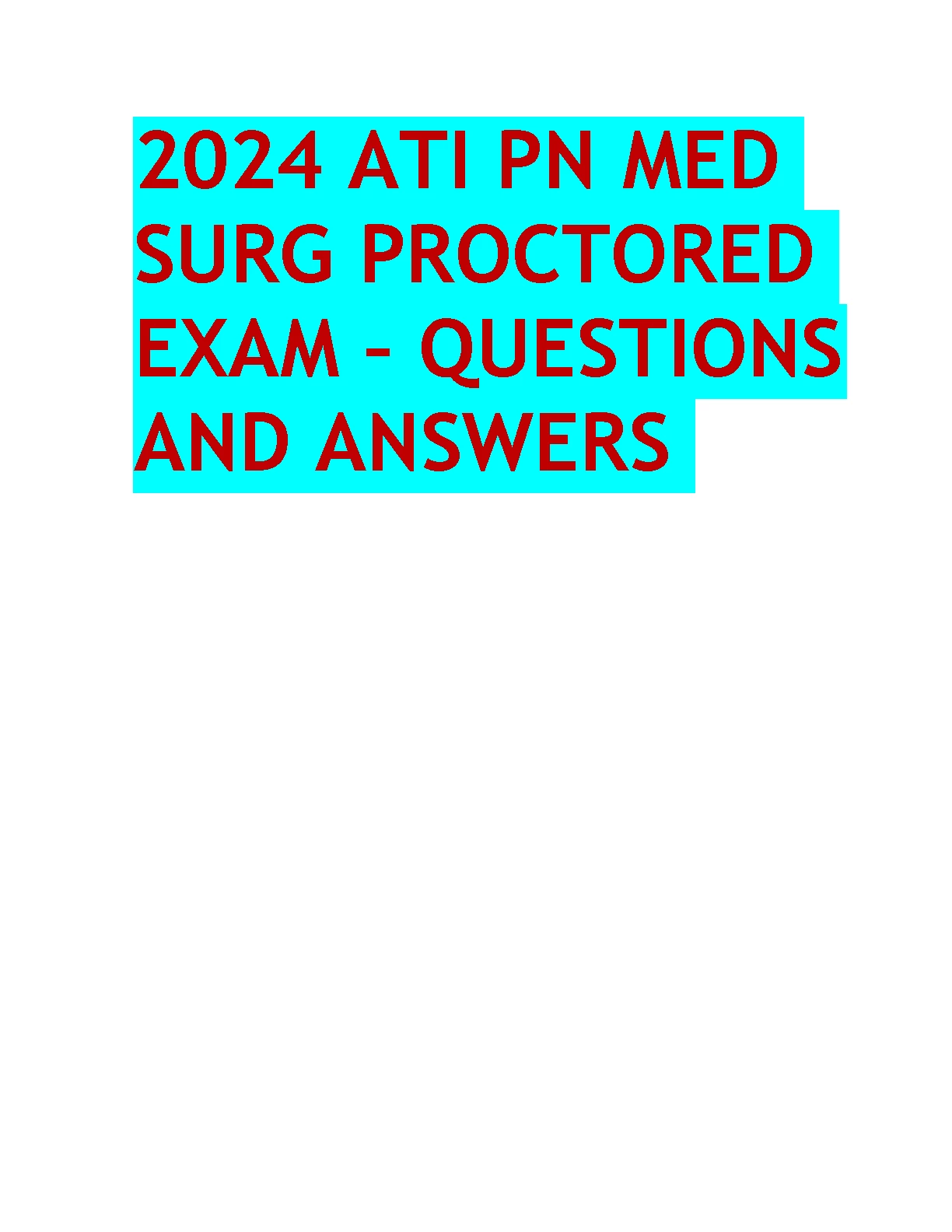 2024 ATI PN MED SURG PROCTORED EXAM – QUESTIONS AND ANSWERS. 2024 ATI PN MED SURG PROCTORED EXAM – QUESTIONS AND ANSWERS ATI