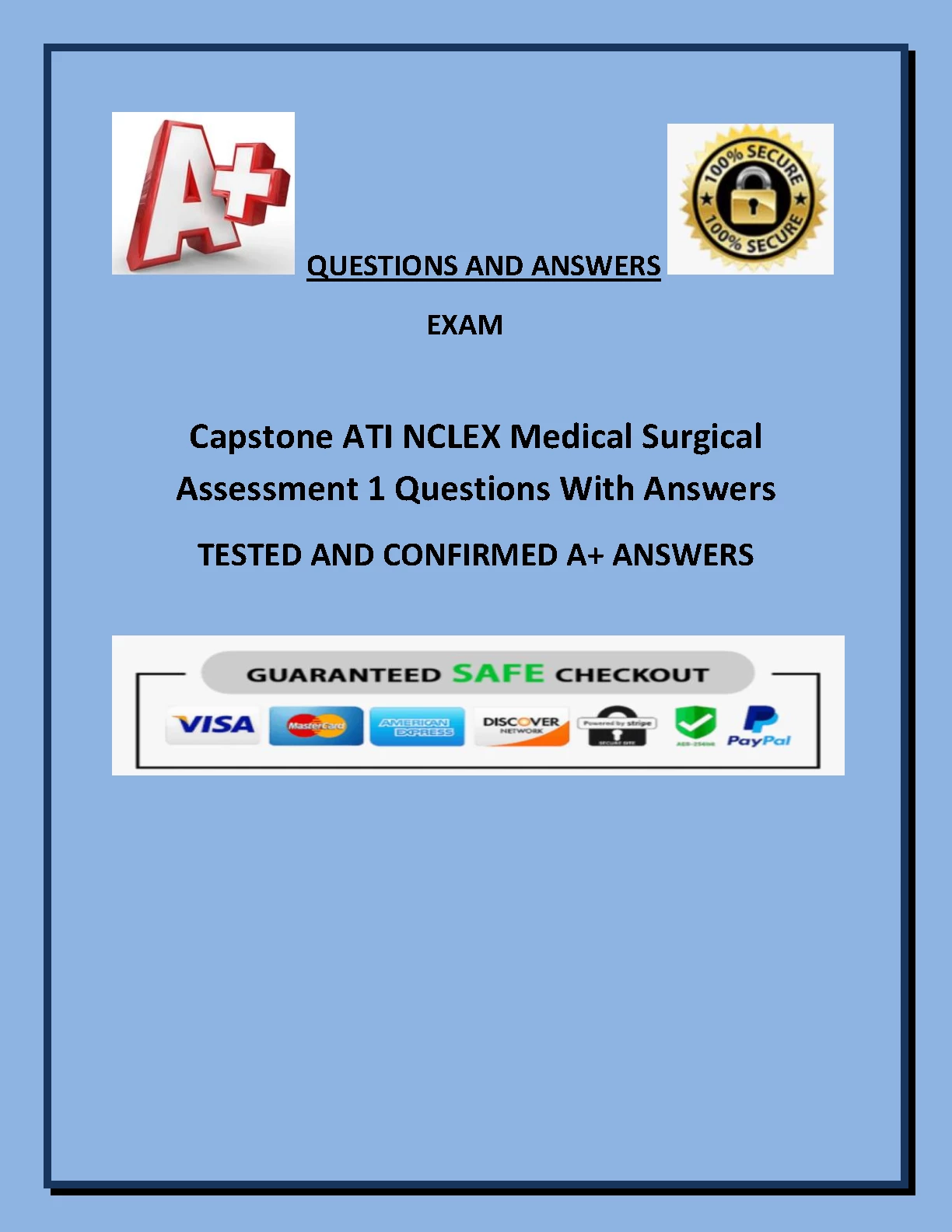 Capstone ATI NCLEX Medical Surgical Assessment 1 Questions With Answers TESTED AND CONFIRMED A+ ANSWERS. Capstone ATI NCLEX Medical Surgical Assessment 1 Questions With Answers TESTED AND CONFIRMED A+ ANSWERS ATI