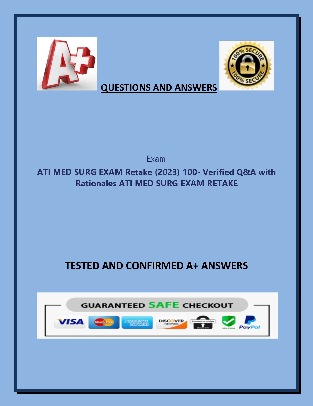 ATI MED SURG EXAM Retake (2023) 100- Verified Q&A with Rationales ATI MED SURG EXAM RETAKE TESTED AND CONFIRMED A+ ANSWERS. ATI MED SURG EXAM Retake (2023) 100- Verified Q&A with Rationales ATI MED SURG EXAM RETAKE TESTED AND CONFIRMED A+ ANSWERS ATI
