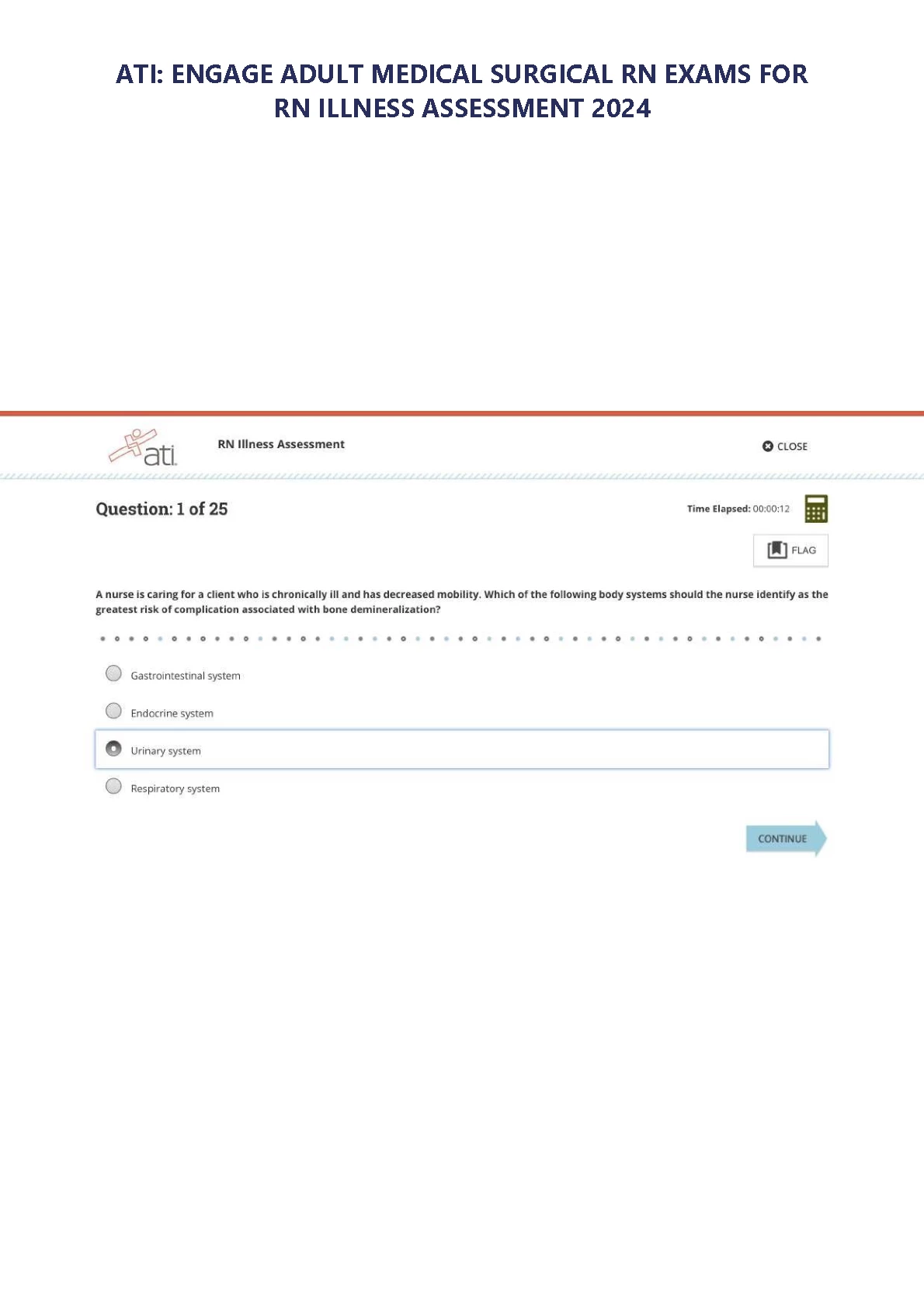 ATI: ENGAGE ADULT MEDICAL SURGICAL RN EXAMS FOR RN ILLNESS ASSESSMENT 2024. ATI: ENGAGE ADULT MEDICAL SURGICAL RN EXAMS FOR RN ILLNESS ASSESSMENT 2024 ATI