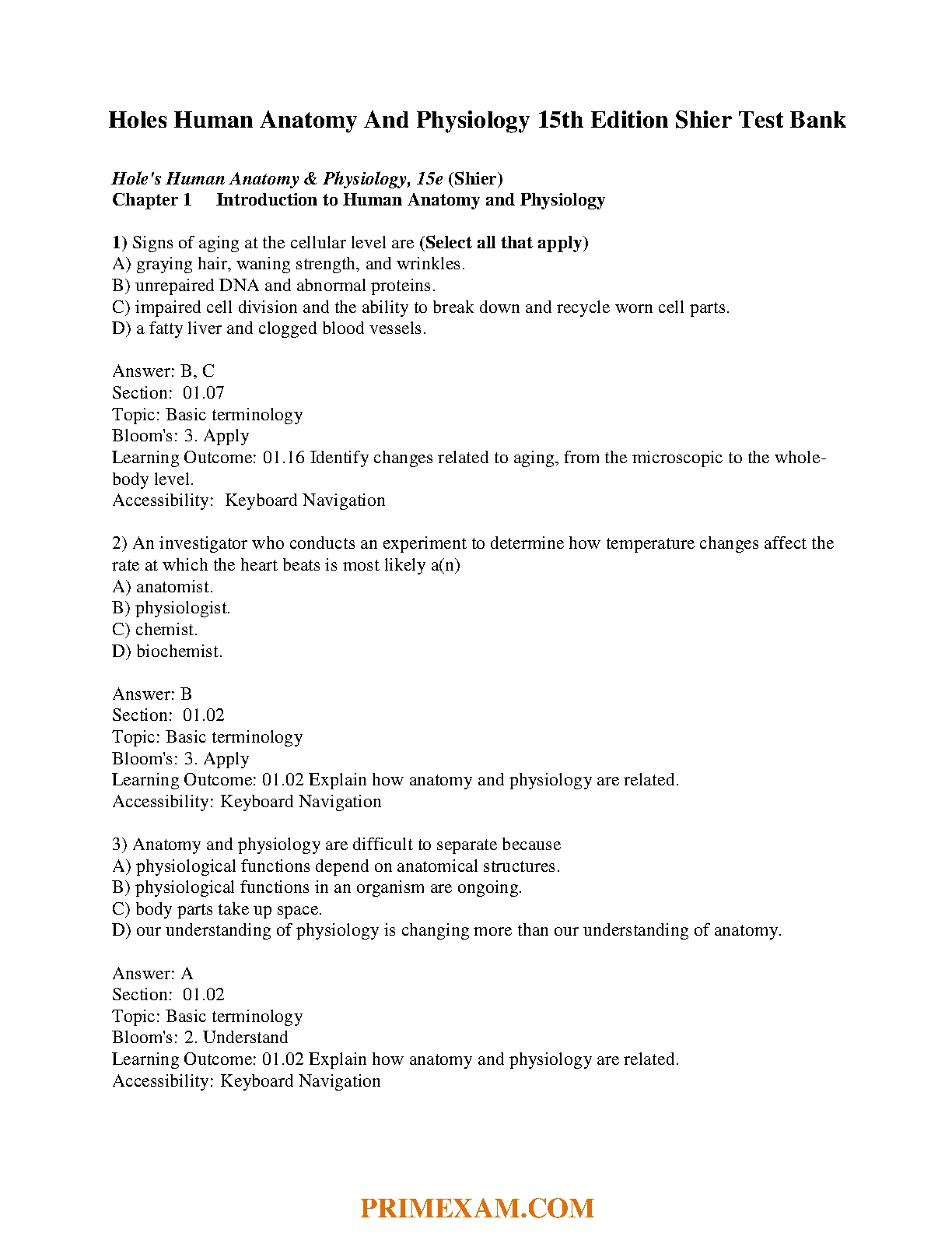 hole's: human anatomy and physiology 15th edition shier test bank. download on www.leakedexams.com instantly.