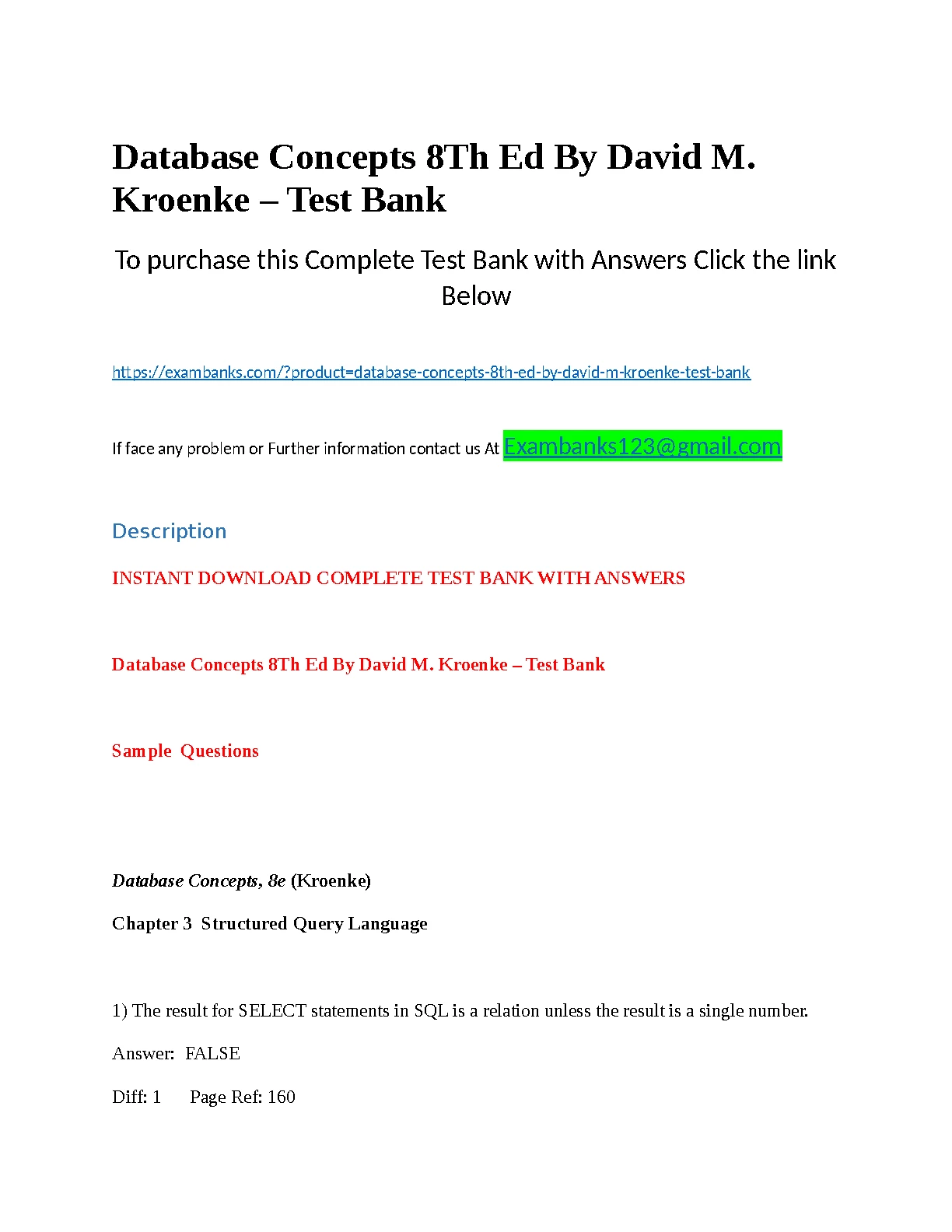 test bank for database concepts 8th edition by david m. kroenke. download the verified paper on www.leakedexams.com to d...