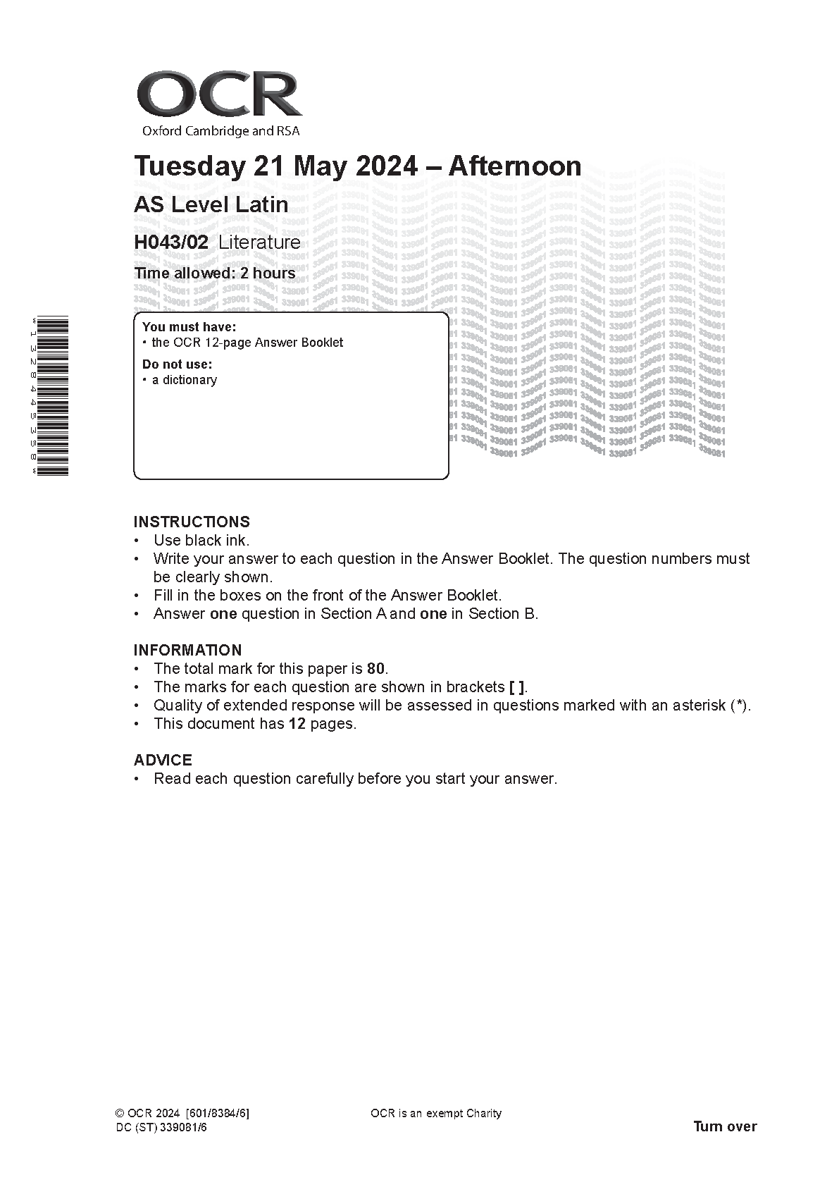 ocr as level latin question paper 2 2024(h043/02:literature).download the official paper on www.leakedexams.com instantl...