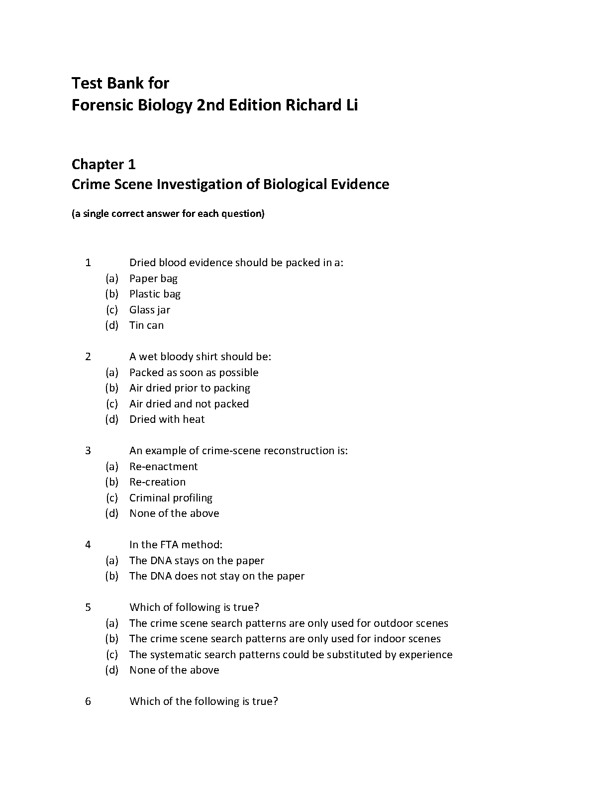 ace your forensic biology exams with this comprehensive test bank for richard li's 2nd edition textbook. prepare effecti...
