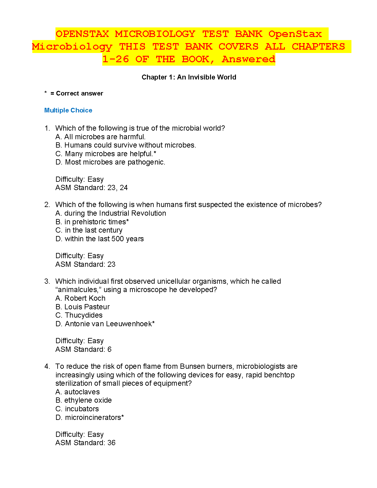 ace your microbiology exams with this comprehensive test bank covering all chapters (1-26) of the openstax microbiology...