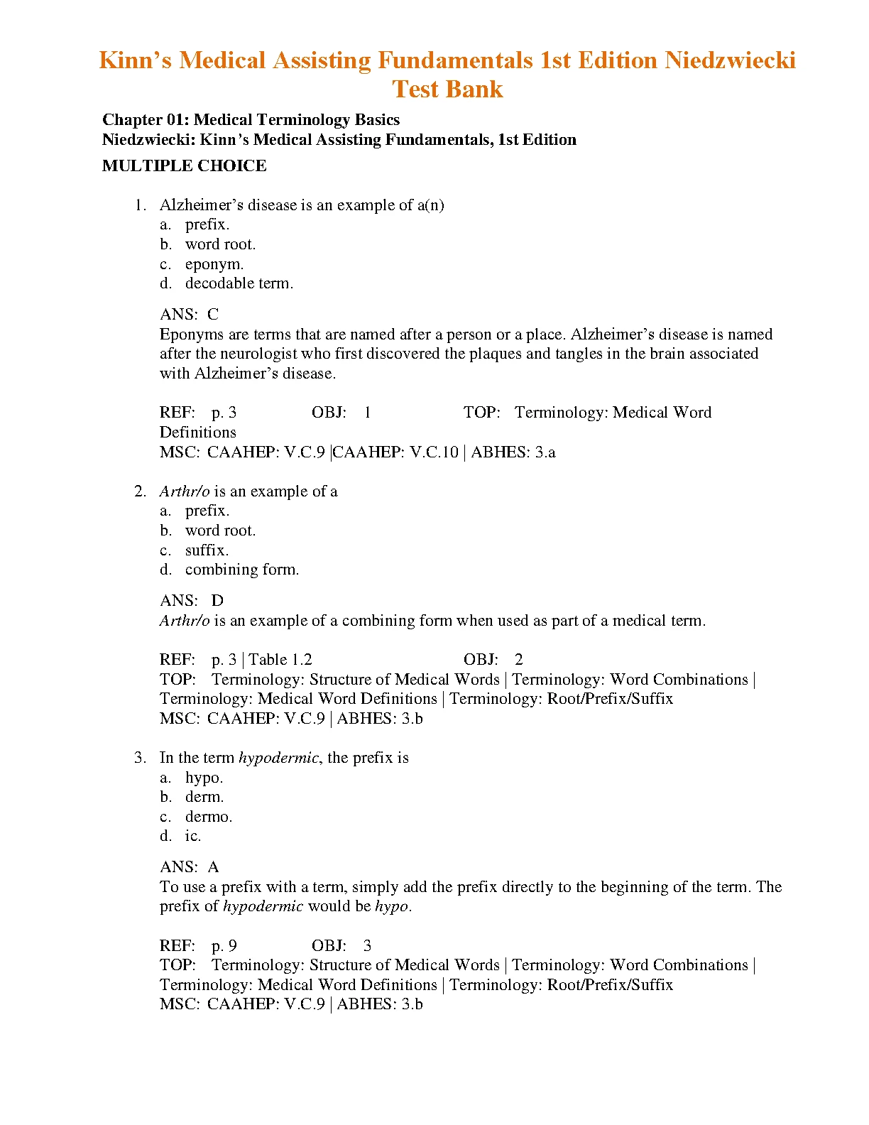 kinn’s medical assisting fundamentals 1st edition niedzwiecki test bank. download on www.leakedexams.com instantly.