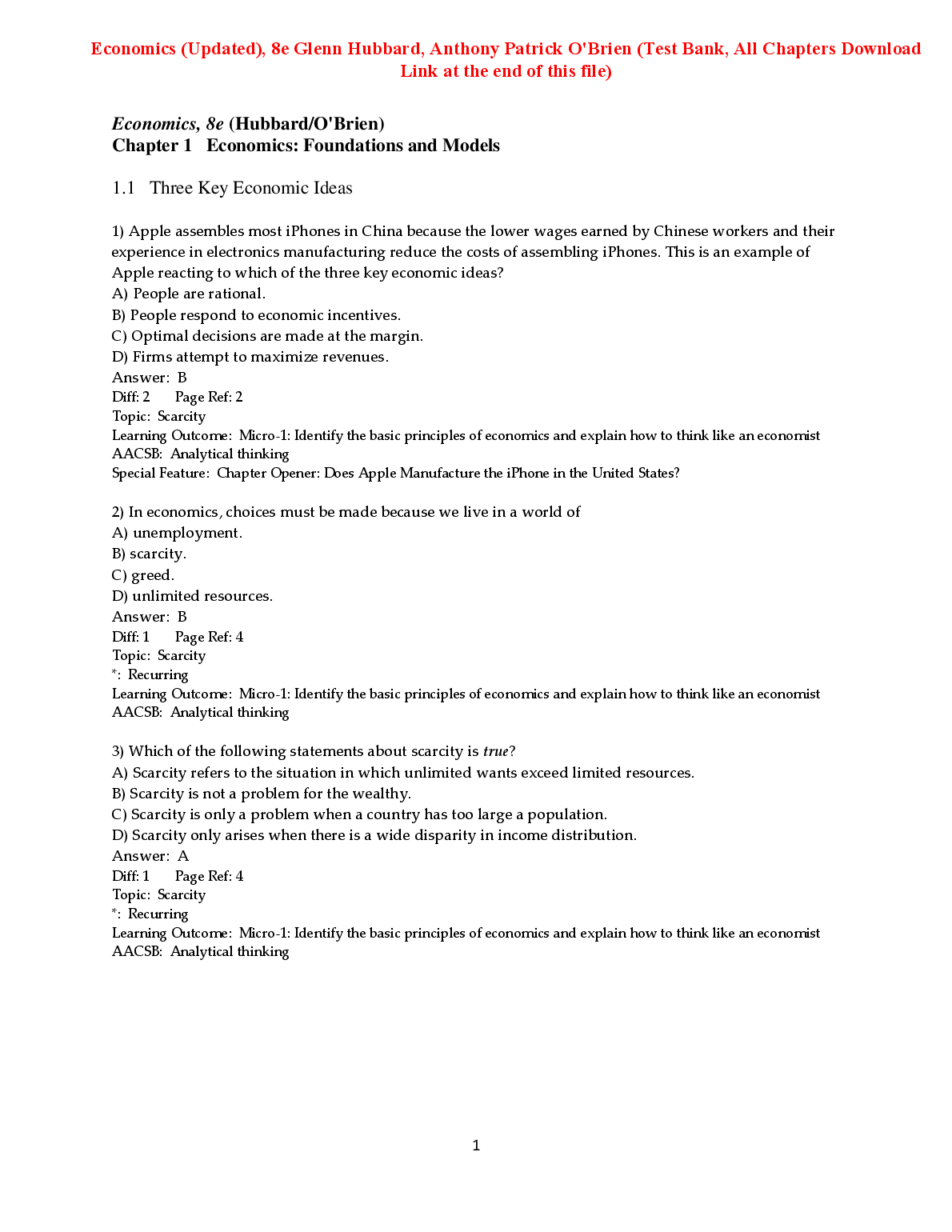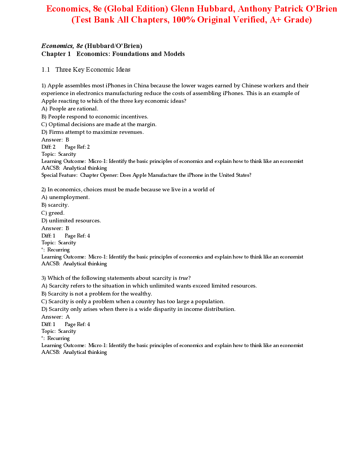 Test Bank For Economics 8th Edition (Global Edition) By Glenn Hubbard and Anthony Patrick O'Brien. Test Bank For Economics 8th Edition (Global Edition) By Glenn Hubbard and Anthony Patrick O'Brien TEST BANK
