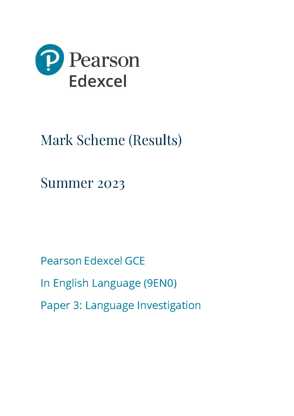 pearson edexcel a level english language paper 3 2023 mark scheme (9en0/03: language investigation). download official a...