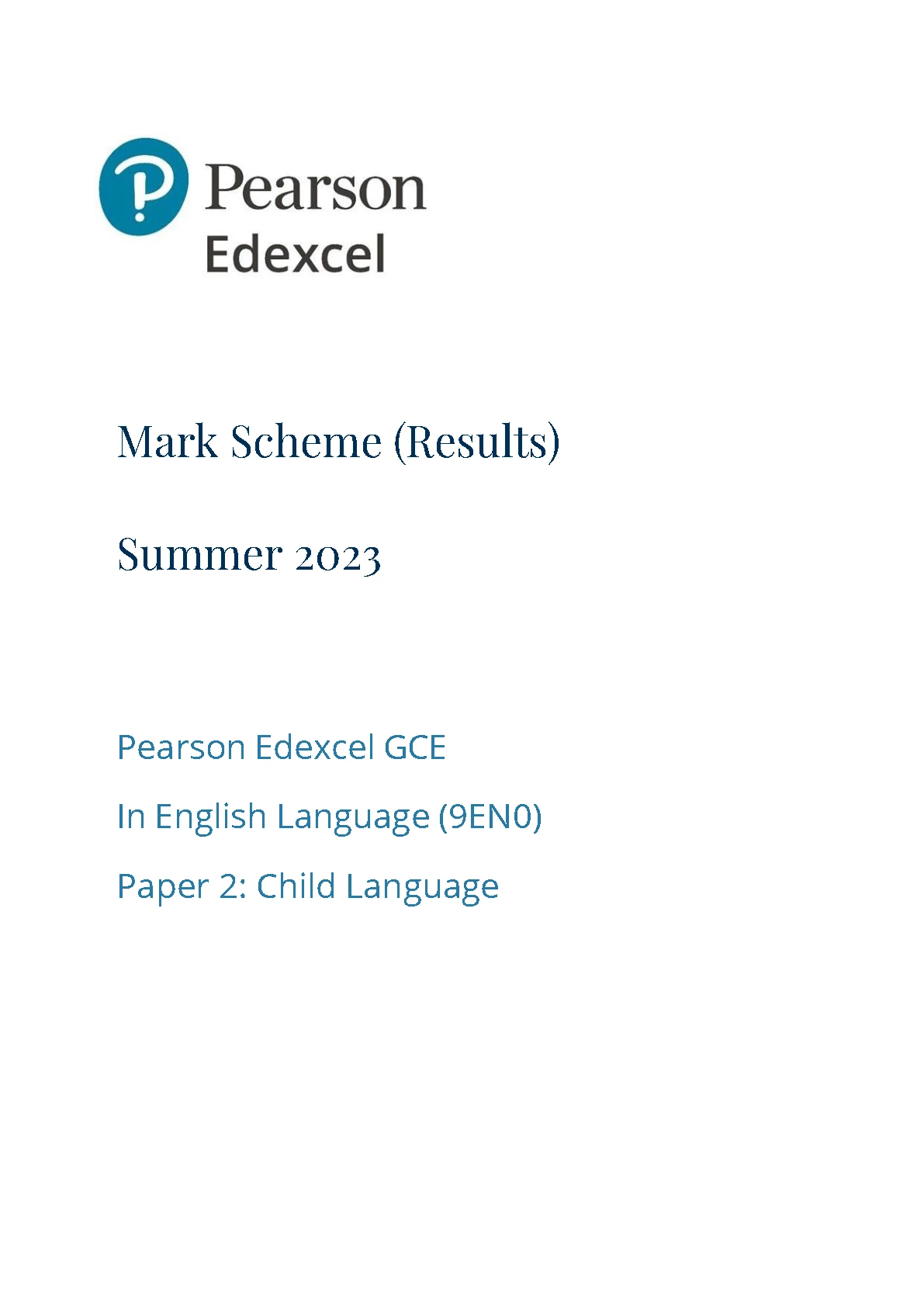 PEARSON EDEXCEL A LEVEL English Language PAPER 2 2023 MARK SCHEME (9EN0/02: Child Language). PEARSON EDEXCEL A LEVEL English Language PAPER 2 2023 MARK SCHEME (9EN0/02: Child Language) Pearson Edexcel A and AS Papers and Mark Schemes