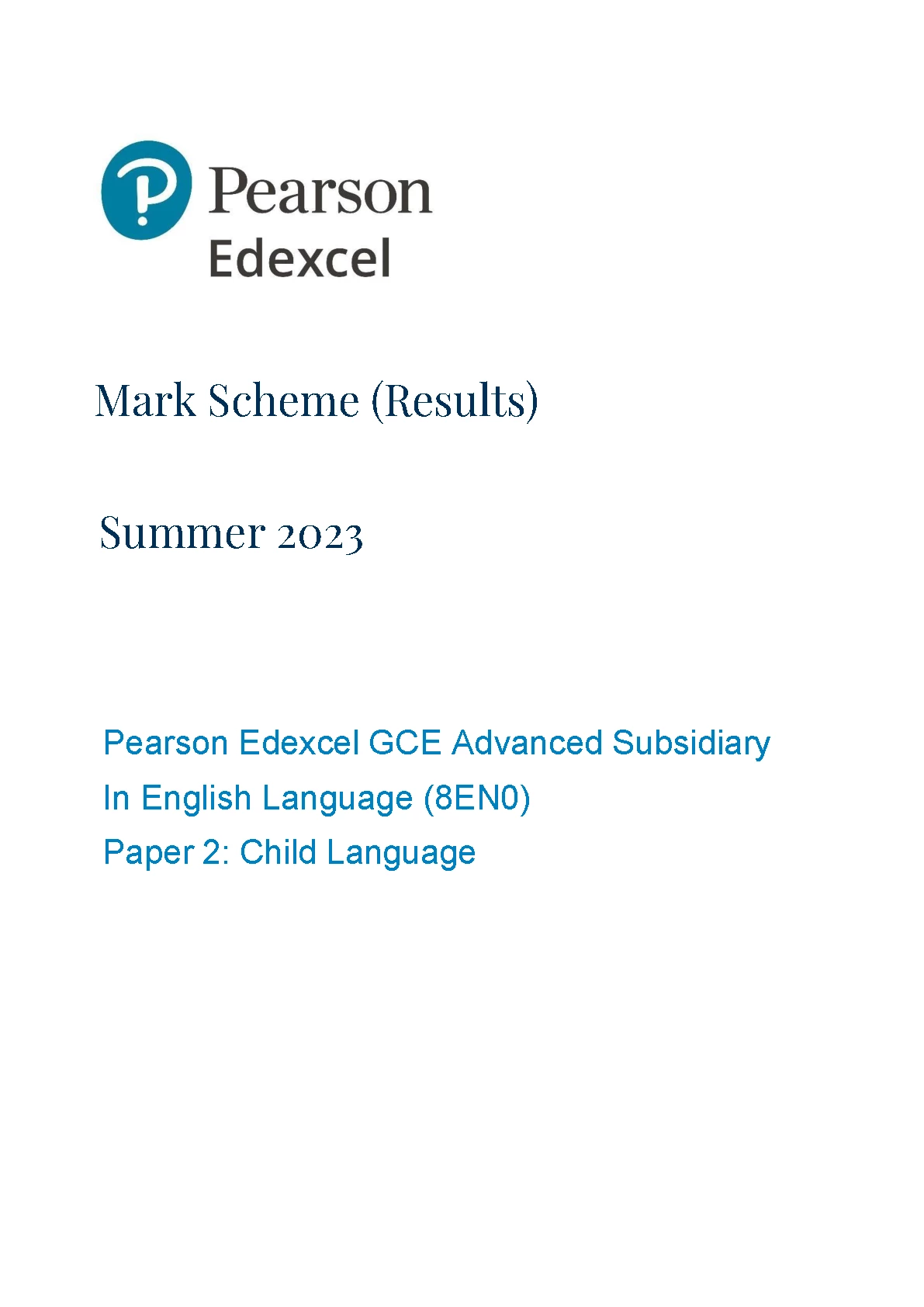 PEARSON EDEXCEL AS LEVEL English Language PAPER 2 2023 MARK SCHEME (8EN0/02: Child Language). PEARSON EDEXCEL AS LEVEL English Language PAPER 2 2023 MARK SCHEME (8EN0/02: Child Language) Pearson Edexcel A and AS Papers and Mark Schemes