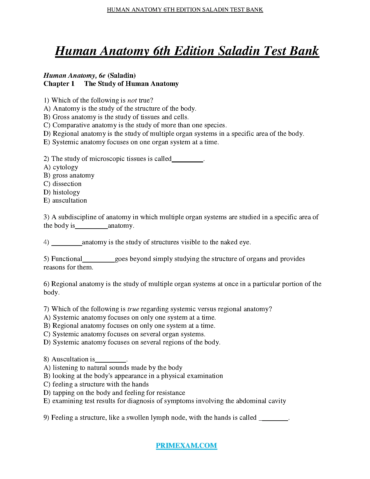 human anatomy 6th edition saladin test bank. download on www.leakedexams.com instantly.