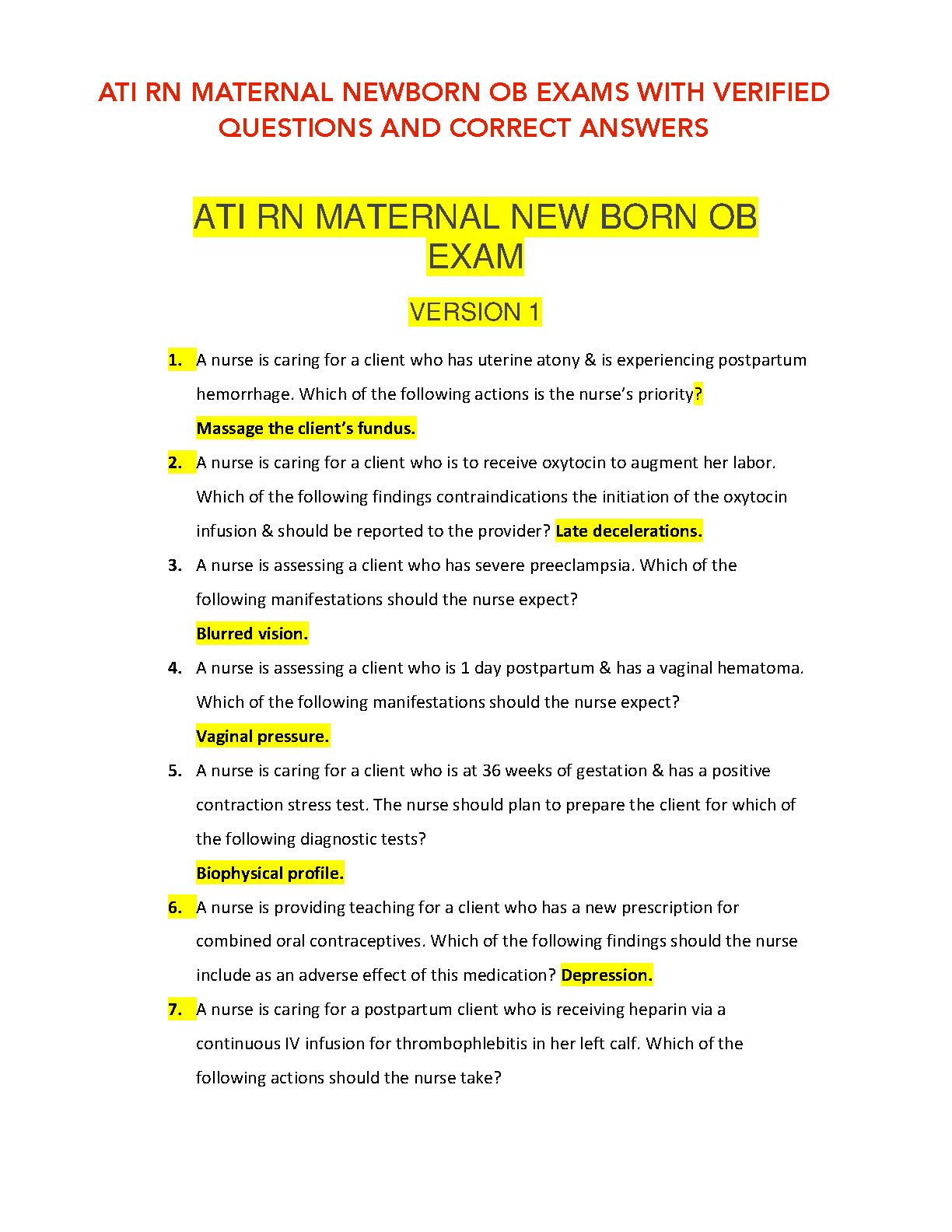 ace your ati rn maternal newborn ob exam on the first try with this comprehensive question bank. this resource contains...