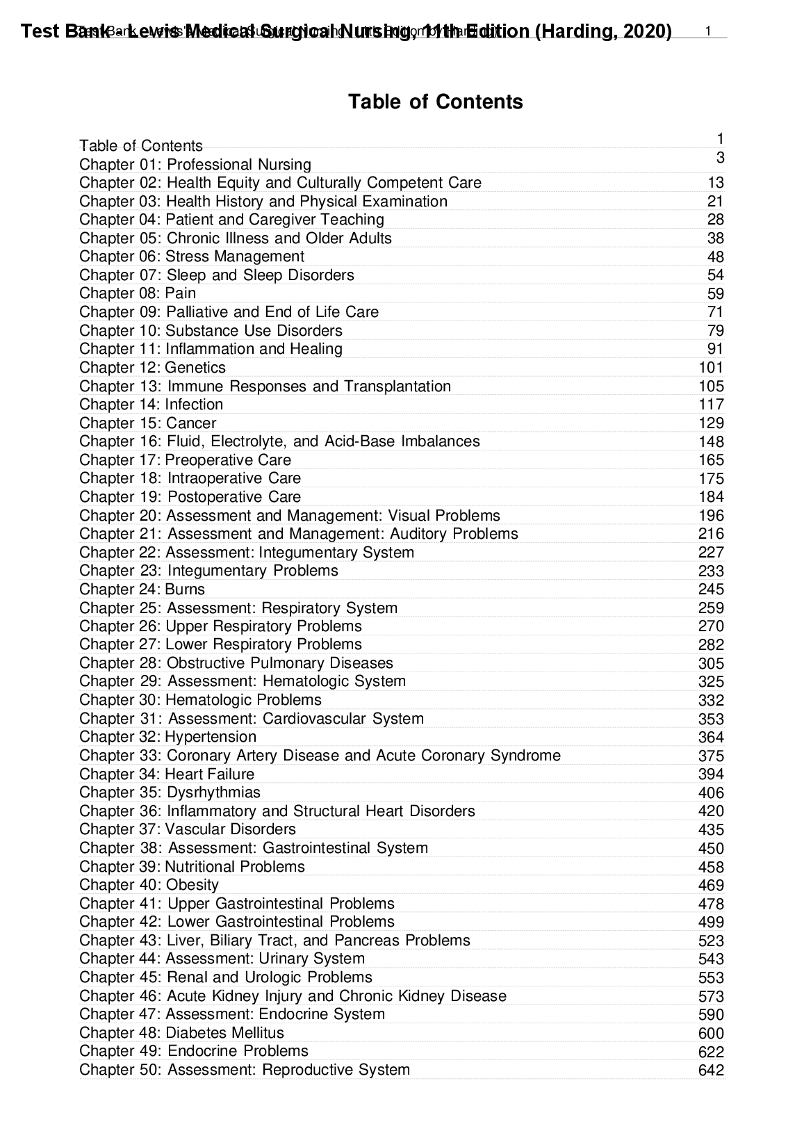 Test Bank for Lewis's Medical-Surgical Nursing: Assessment and Management of Clinical Problems, Single Volume 11th Edition by Mariann M. Harding, Jeffrey Kwong, Dottie Roberts, Debra Hagler, and Courtney Reinisch(Chapters 1-68) Guaranteed A+ Guide. Test Bank for Lewis's Medical-Surgical Nursing: Assessment and Management of Clinical Problems, Single Volume 11th Edition by Mariann M. Harding, Jeffrey Kwong, Dottie Roberts, Debra Hagler, and Courtney Reinisch(Chapters 1-68) Guaranteed A+ Guide TEST BANK