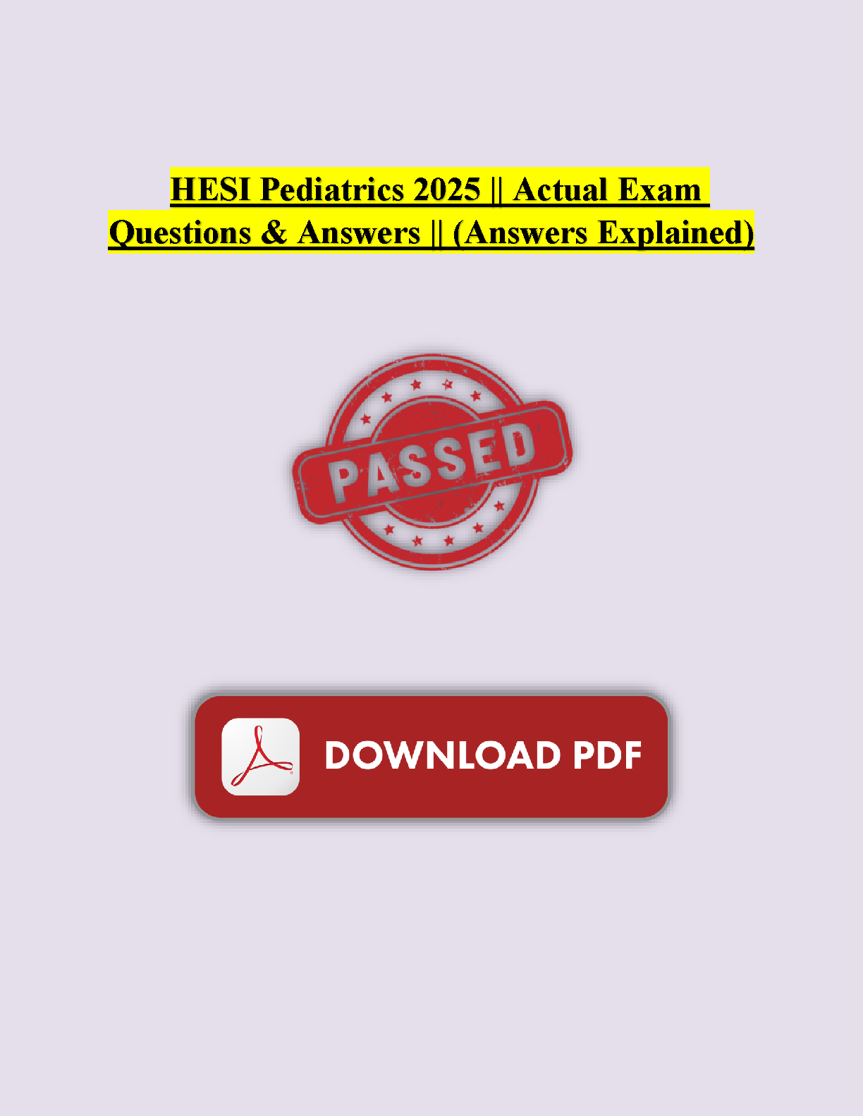 conquer the hesi pediatrics exam in 2025 with this comprehensive resource. this guide provides actual exam questions and...