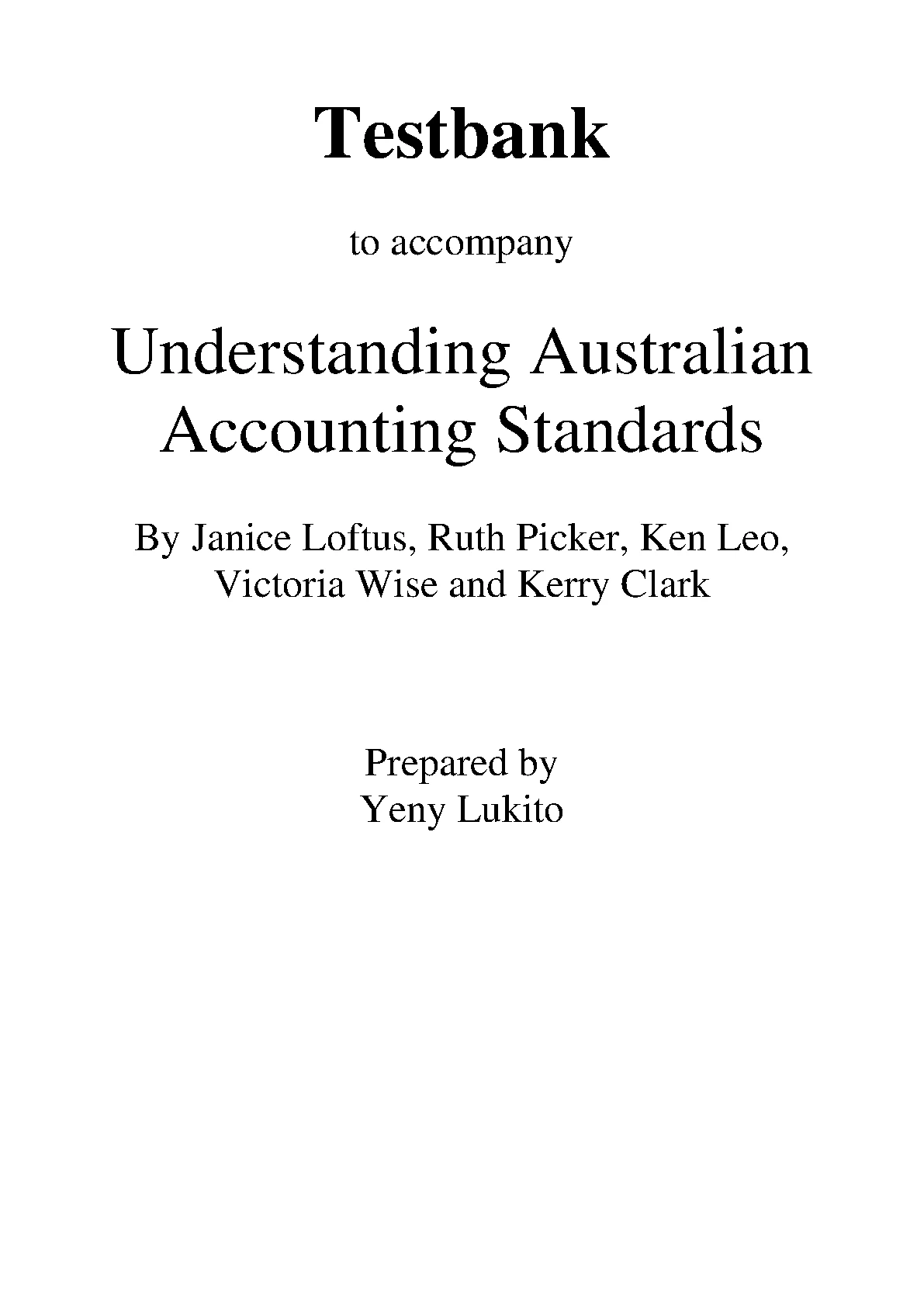 Test Bank for Understanding Australian Accounting Standards 1st Edition by Janice Loftus Ken Leo Ruth Picker Victoria Wise Kerry Clark (Test Bank). Test Bank for Understanding Australian Accounting Standards 1st Edition by Janice Loftus Ken Leo Ruth Picker Victoria Wise Kerry Clark (Test Bank) TEST BANK