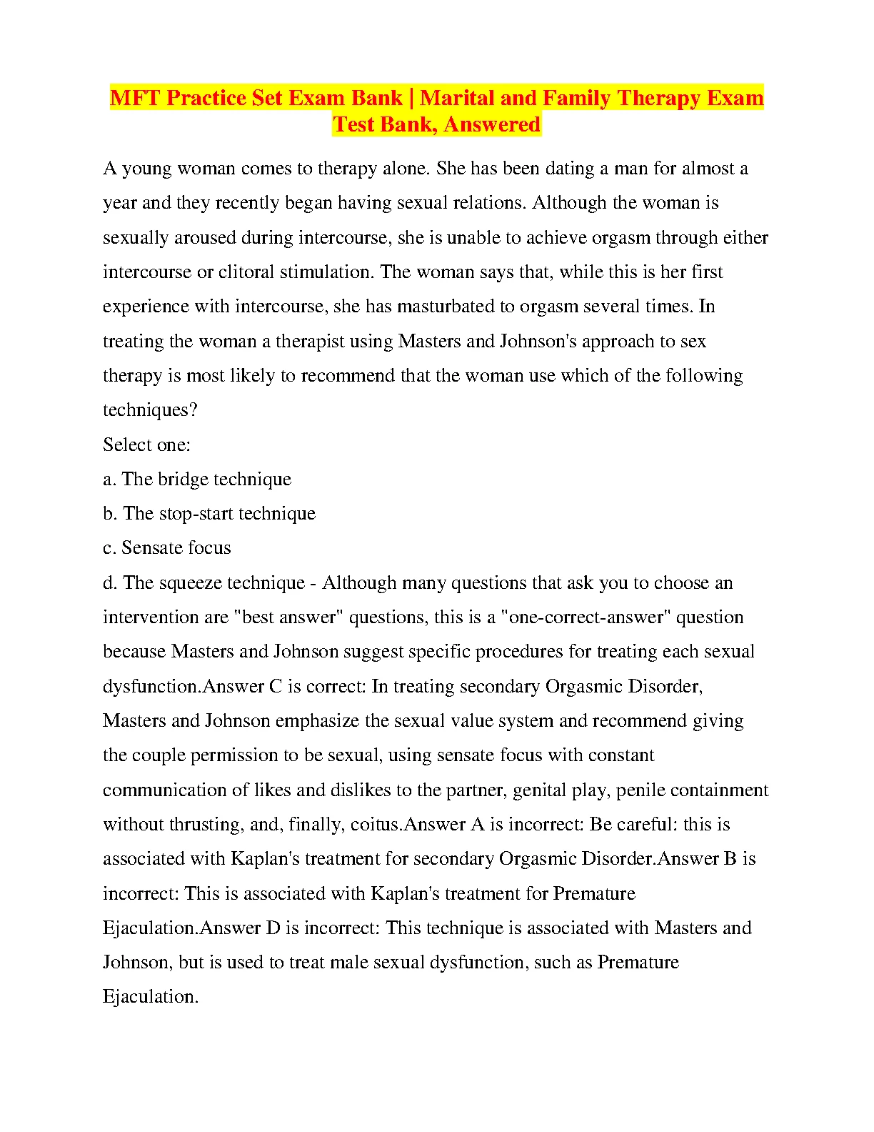 2024 MFT Practice Set Exam Bank Marital and Family Therapy Exam Test Bank. 2024 MFT Practice Set Exam Bank Marital and Family Therapy Exam Test Bank EXAM
