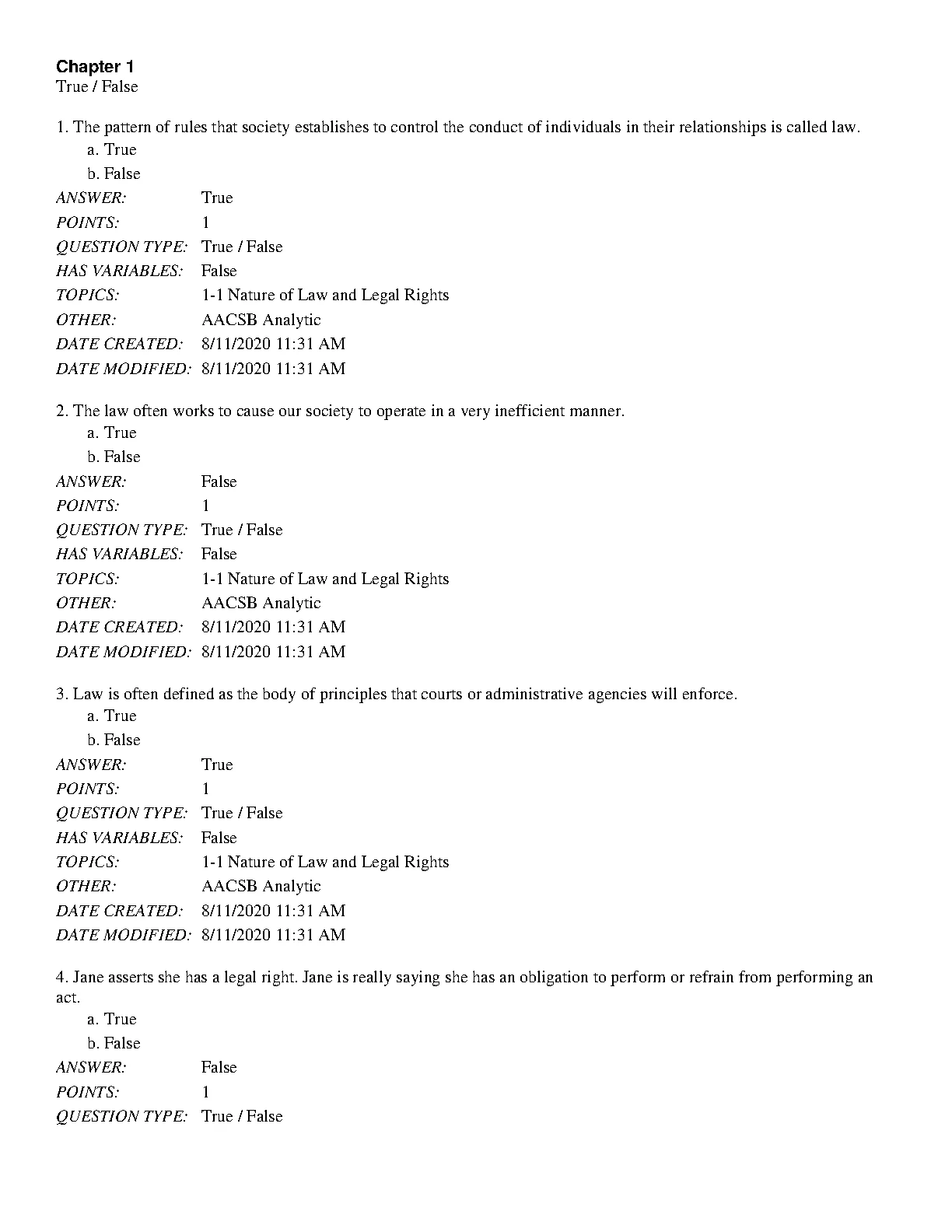 test bank for anderson's business law & the legal environment (comprehensive edition), 24th edition by david twomey, mar...