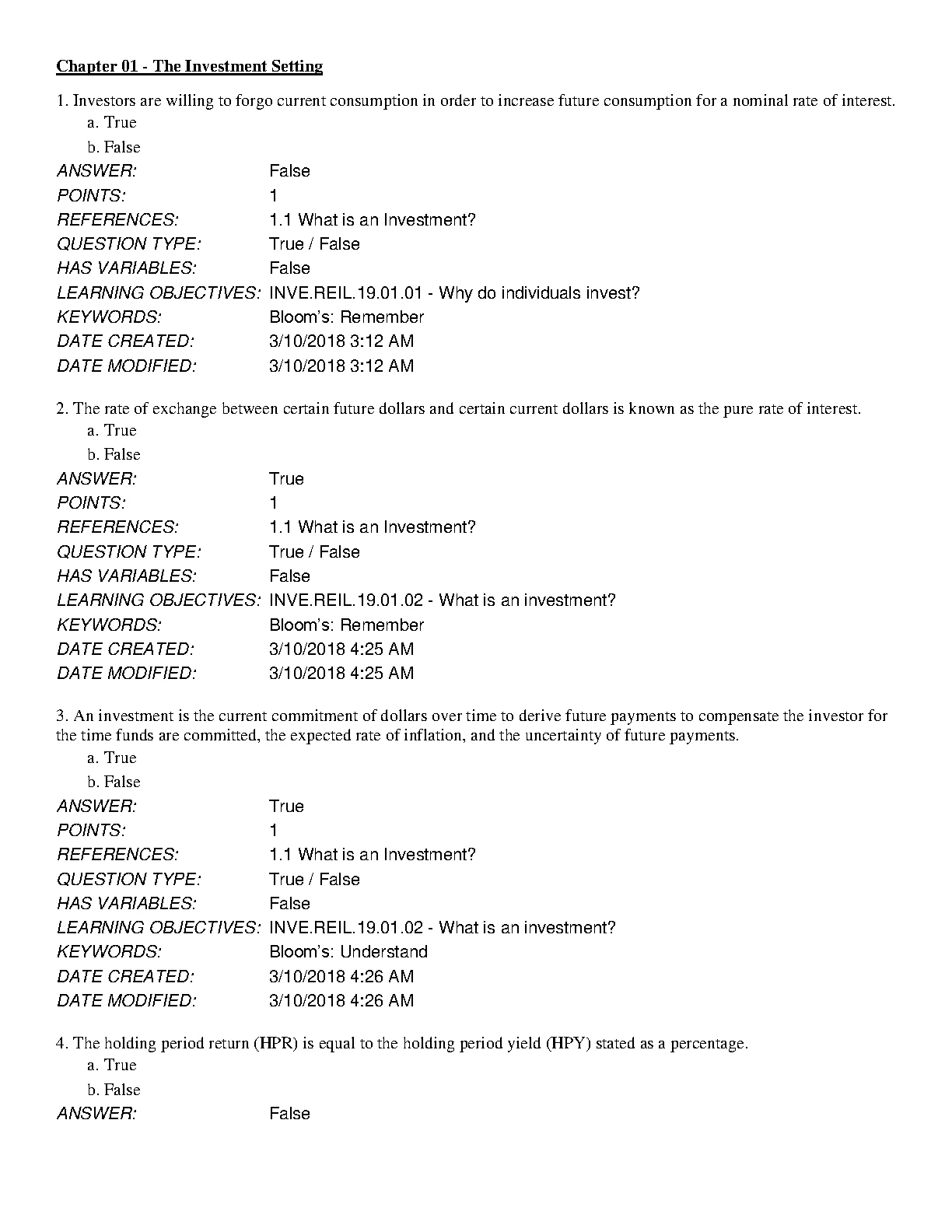 Test Bank for Investment Analysis and Portfolio Management, 11th Edition by Frank Reilly, Keith Brown. Test Bank for Investment Analysis and Portfolio Management, 11th Edition by Frank Reilly, Keith Brown TEST BANK