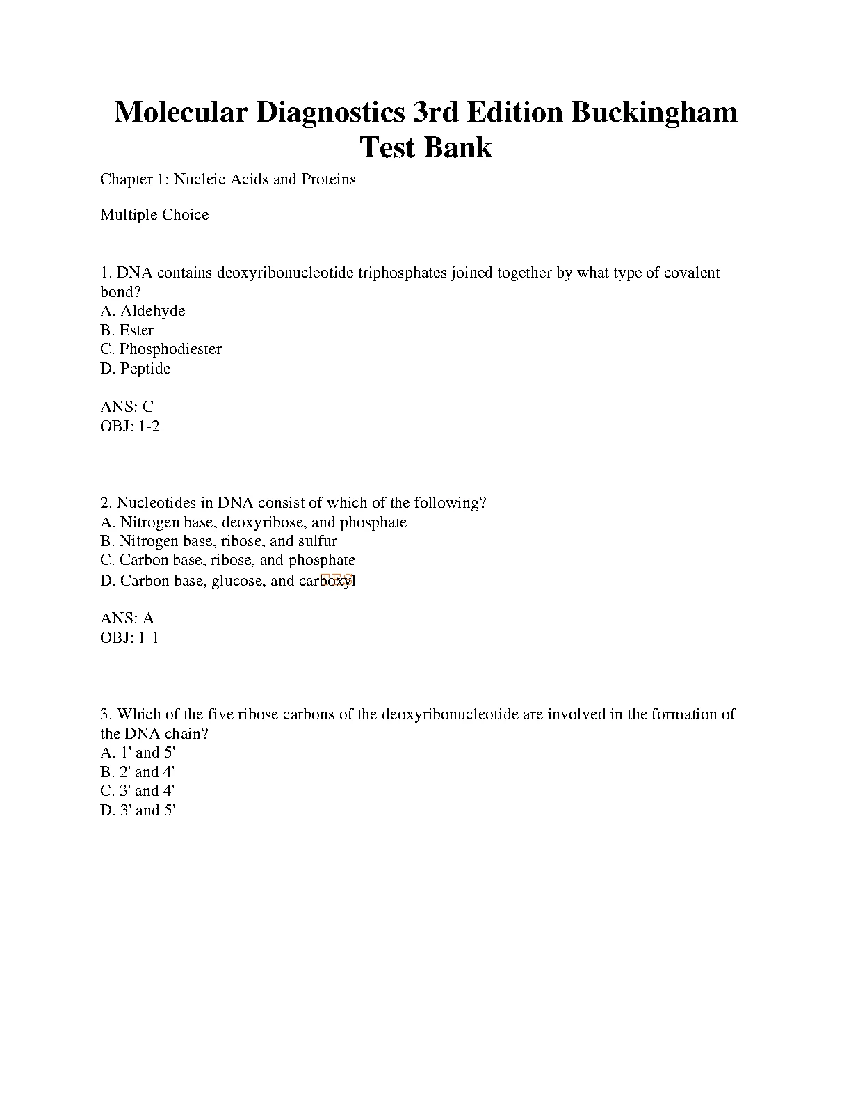 test bank for molecular diagnostics 3rd edition by lela buckingham