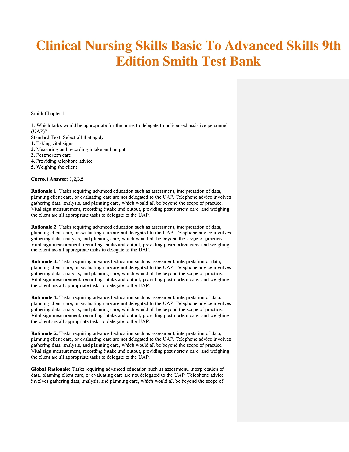 Test Bank For Clinical Nursing Skills 9th Edition by Sandra Smith, Donna Duell, Barbara Martin, Michelle Aebersold and Laura Gonzalez. Test Bank For Clinical Nursing Skills 9th Edition by Sandra Smith, Donna Duell, Barbara Martin, Michelle Aebersold and Laura Gonzalez TEST BANK