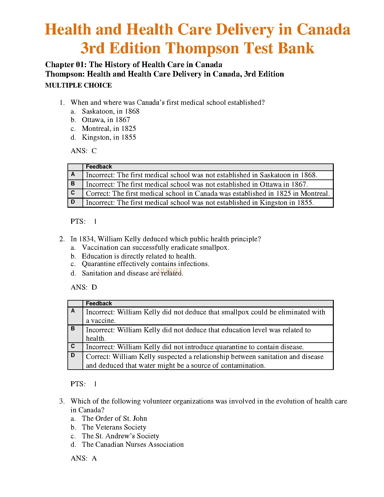 Test Bank For Health and Health Care Delivery in Canada 3rd Edition by Valerie D. Thompson. Test Bank For Health and Health Care Delivery in Canada 3rd Edition by Valerie D. Thompson TEST BANK