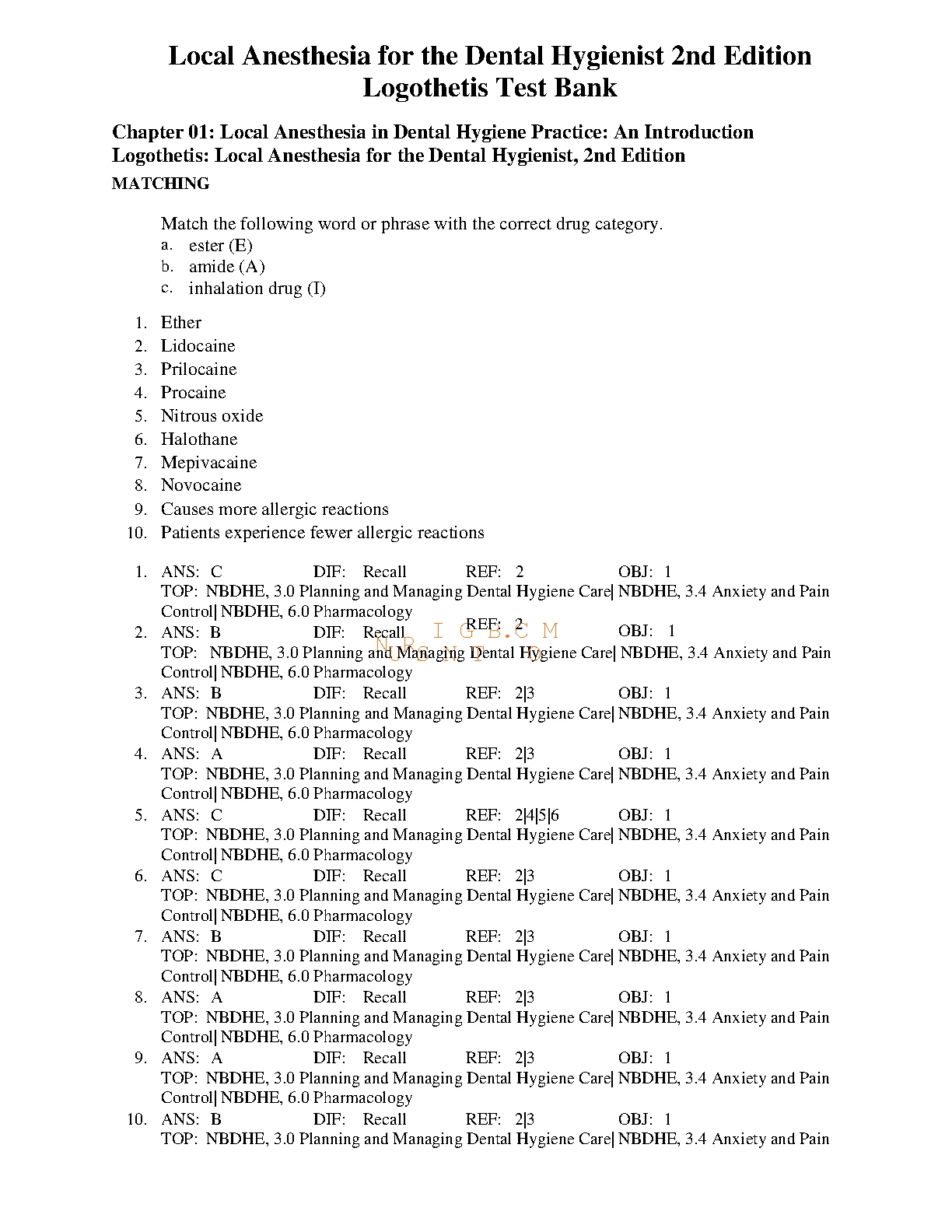 Test Bank For Local Anesthesia for the Dental Hygienist 2nd Edition by Demetra Daskalo Logothetis. Test Bank For Local Anesthesia for the Dental Hygienist 2nd Edition by Demetra Daskalo Logothetis TEST BANK