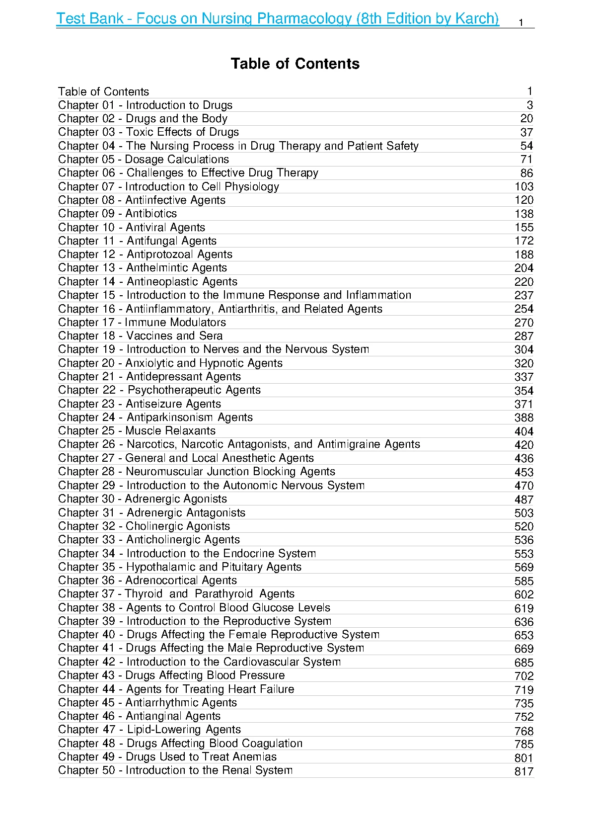 Test Bank For Focus on Nursing Pharmacology 8th Edition by Amy M. Karch. Test Bank For Focus on Nursing Pharmacology 8th Edition by Amy M. Karch TEST BANK