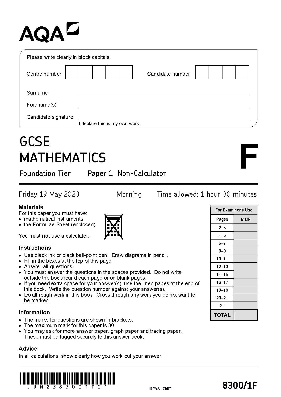 aqa gcse mathematics paper 1 insert 2023 (8300/1f: formulae sheet). download official and verified aqa gcse mathematics...