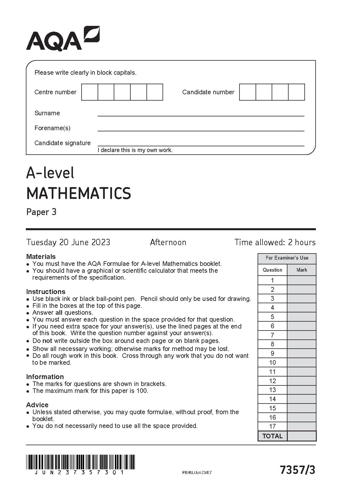 aqa a level mathematics paper 3 question paper 2023 (7357/3). download official and verified aqa a level mathematics pap...